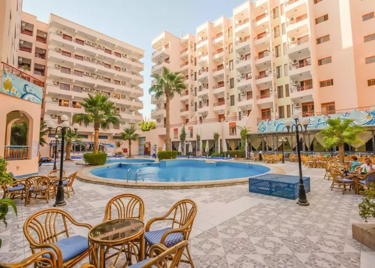 Разположение: Разположен в сърцето на Хургада, на около 800 м от ценъра на града, на 13 км от летището в Хургада, на метри от частен плаж, в средата на огромен търговски център.