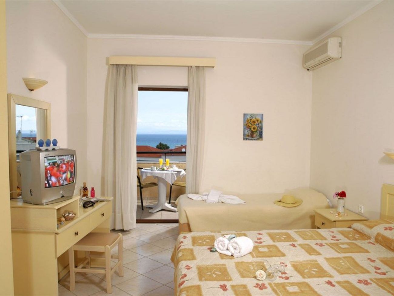 Хотелът се намира на първия ръкав Касандра на Халкидическия полуостров, на 150 м. от плажа и в центъра на селището Ханиоти
