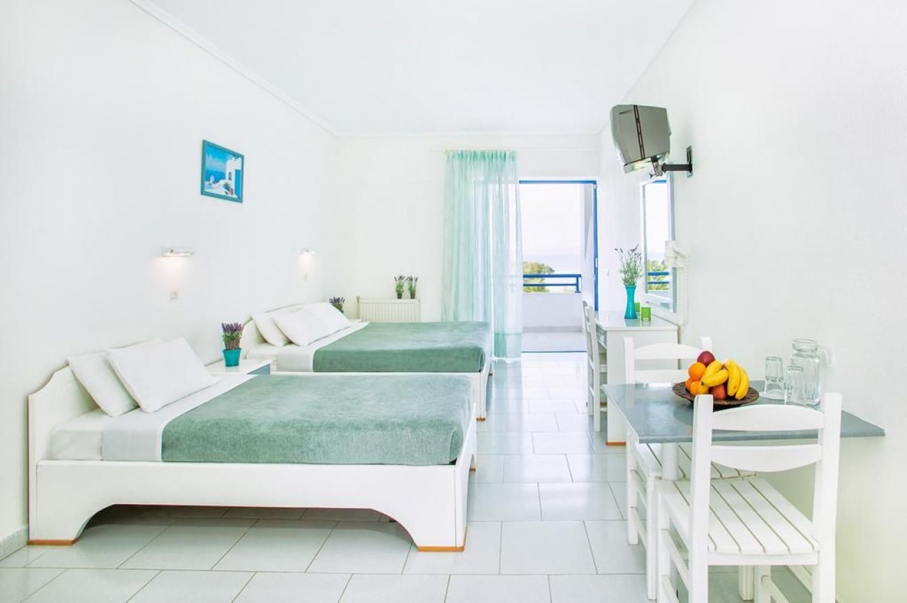Стаи: разполага със 74 студиа, 4 двойни и 12 фамилни стаи. Всички стаи са с изглед към морето, градината или басейна и са оборудвани с хладилник, климатик /безплатен/, телевизор и телефон. Безжичен интернет – заплаща се на място. Има бебешки легла на запитване, заплащат се допълнително на място.