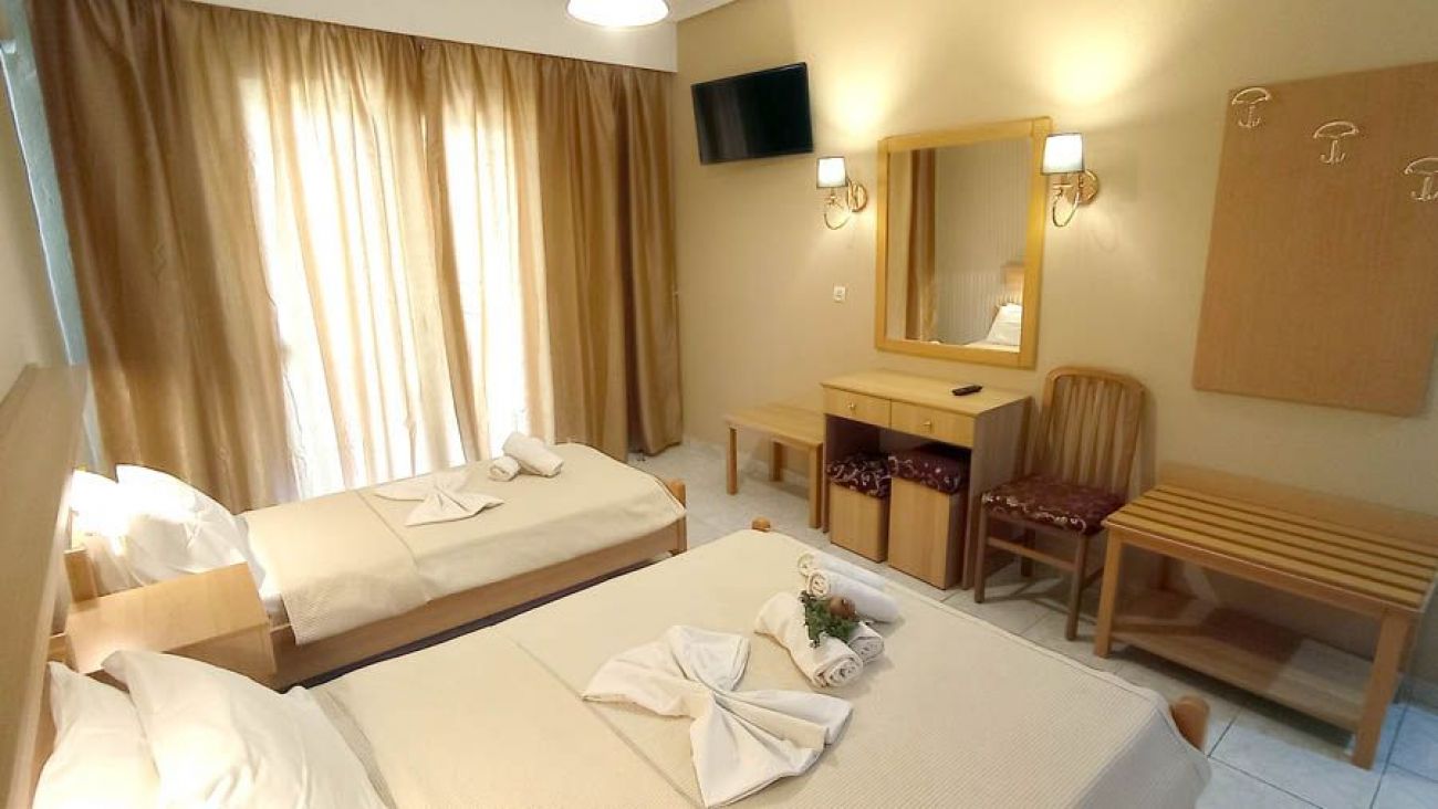Всички 24 стаи разполагат с климатик, телевизор, телефон, самостоятелна баня (душ или вана), балкон (гледка към морето или улица), сешоар, хладилник и безплатен Wi-Fi интернет.