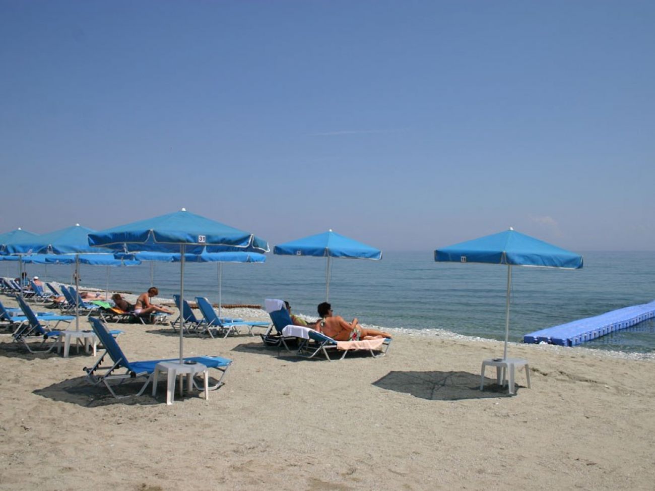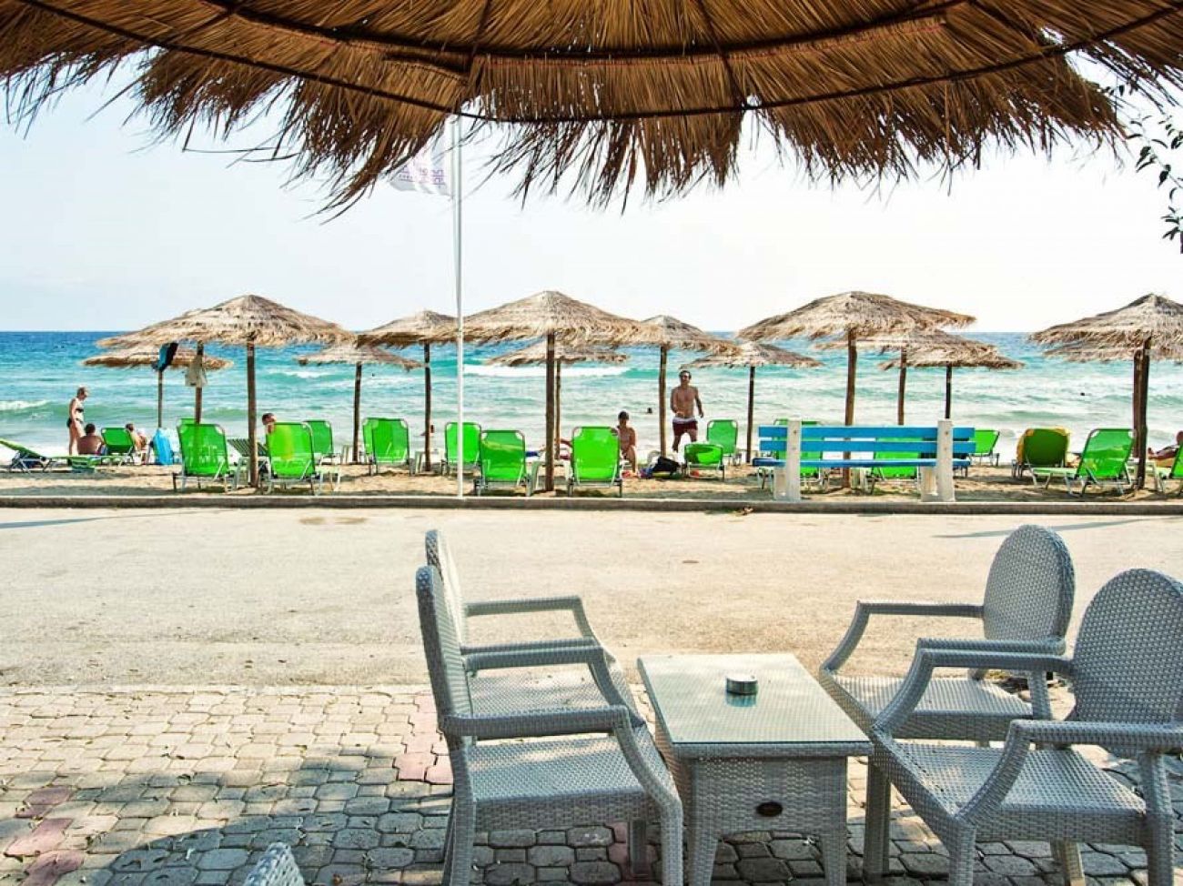 Плаж - Пясъчно-чакълест до хотела. Плажни кърпи, чадъри и шезлонги срещу заплащане. Душове и съблекални на плажа.