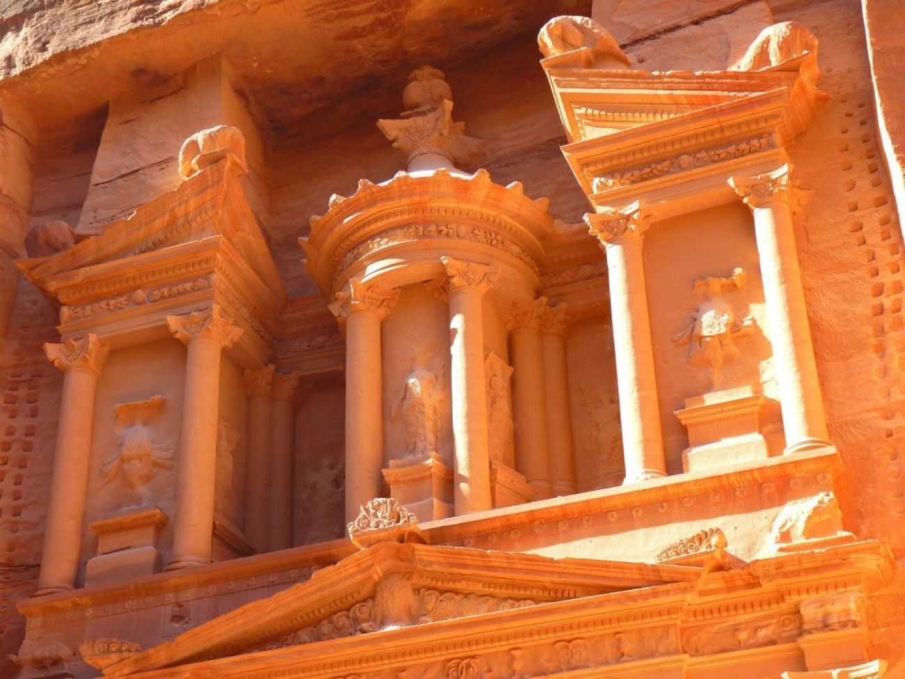 Закуска. Напускане на хотела. Отпътуване за целодневна екскурзия до Петра – уникален град, изсечен в скалите, свещен град на набатейците, заселили се тук преди повече от 2000 години, превърнали го в център на всички търговски пътища, свързващи Изтока със Запада. Избрана за едно от новите седем чудеса на света, Петра е безспорно един от най-впечатляващите и богати архитектурни комплекси, включена в списъка на ЮНЕСКО за Световното културно и природно наследство. Посещението на Петра започва с разходка през прохода Сик - тясно, сенчесто ждрело между две надвиснали скали. В края на този проход се разкрива смайваща и магическа гледка през пролуката - съкровищницата „Ал Хазне“, владетелска гробница на набатейците в класически гръцки стил, изсечена в огромната лицева част на 39-метрова скала.Това е най-добре запазената фасада в Петра и се смята за шедьовър на набатейската цивилизация. От съкровищницата започва главният път, който постепенно ще разкрие мистериите на този древен град - т. нар. „Улица на фасадите“, Амфитеатърът - единственият в света, изсечен в скала, владетелските гробници и Набатейският храм. Над комплекса се извисява манастирът „Ад Деир“, до който се стига по 800 стъпала. Късно следобед отпътуване към столицата Аман. Настаняване. Вечеря. Нощувка.