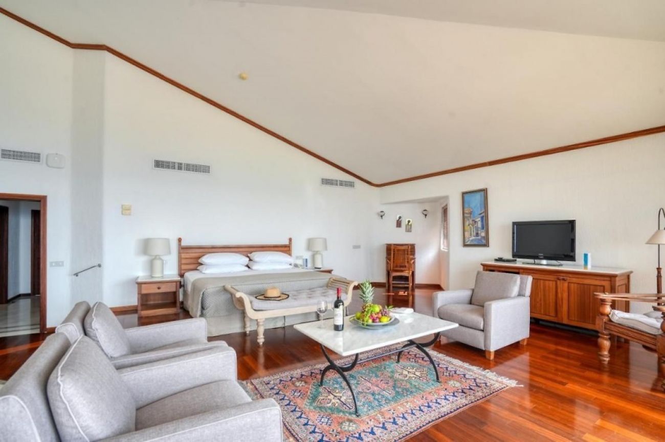 - Suite Presidential: Панорамен изглед към залива, луксозно обзавеждане, дневна/трапезария, кухненски бокс, голям балкон, двойно легло.