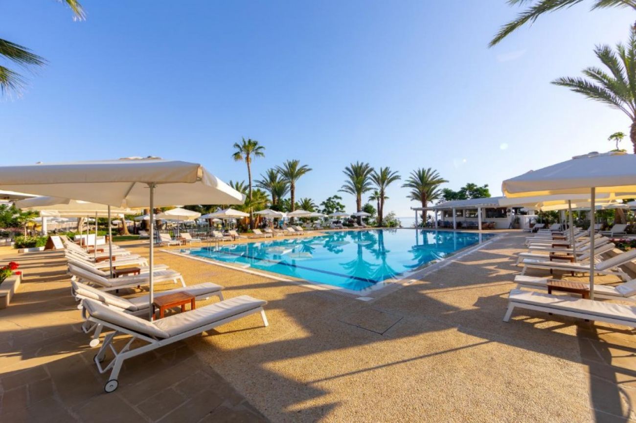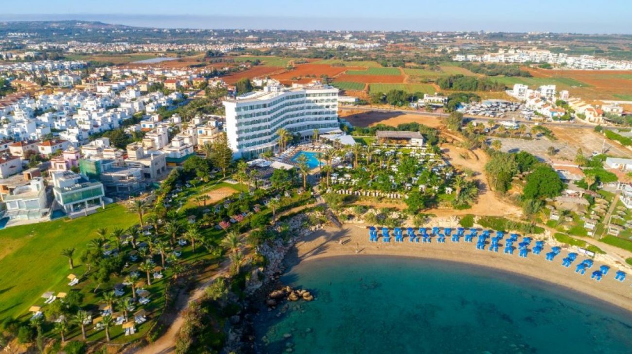 Курортът е заобиколен от буйни озеленени градини, до живописно рибарско пристанище, на 5 километра от село Протарас. Светлите стаи разполагат с обзаведен балкон, климатик, сателитна телевизия и самостоятелна баня със сешоар. Разполага с открит басейн с обособен детски кът, тераса за слънчеви бани, СПА център, фитнес център, тенис корт и анимационна програма. Ресторантът предлага международна и регионална кухня, специално детско меню и тематични вечери. Баровете на хотела предлагат богат избор от топли и студени напитки и алкохолни коктейли. Извън хотела гостите ще намерят огромно разнообразие от магазини и кафенета, разнообразие от развлечения, както и оживен нощен живот. Ето защо хотелът е идеален както за двойки без деца, така и за семейства.
