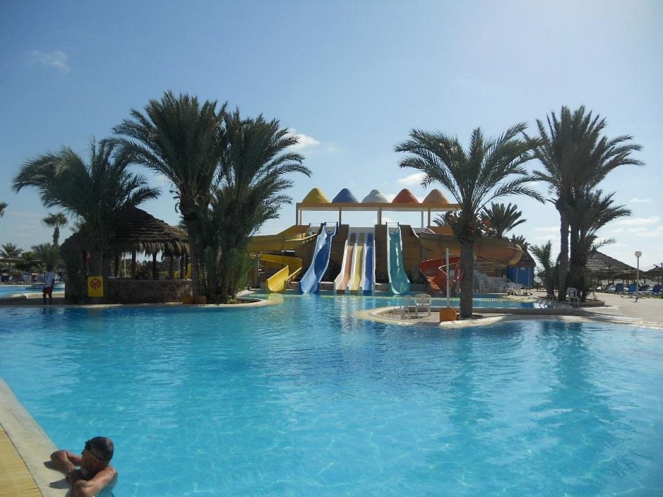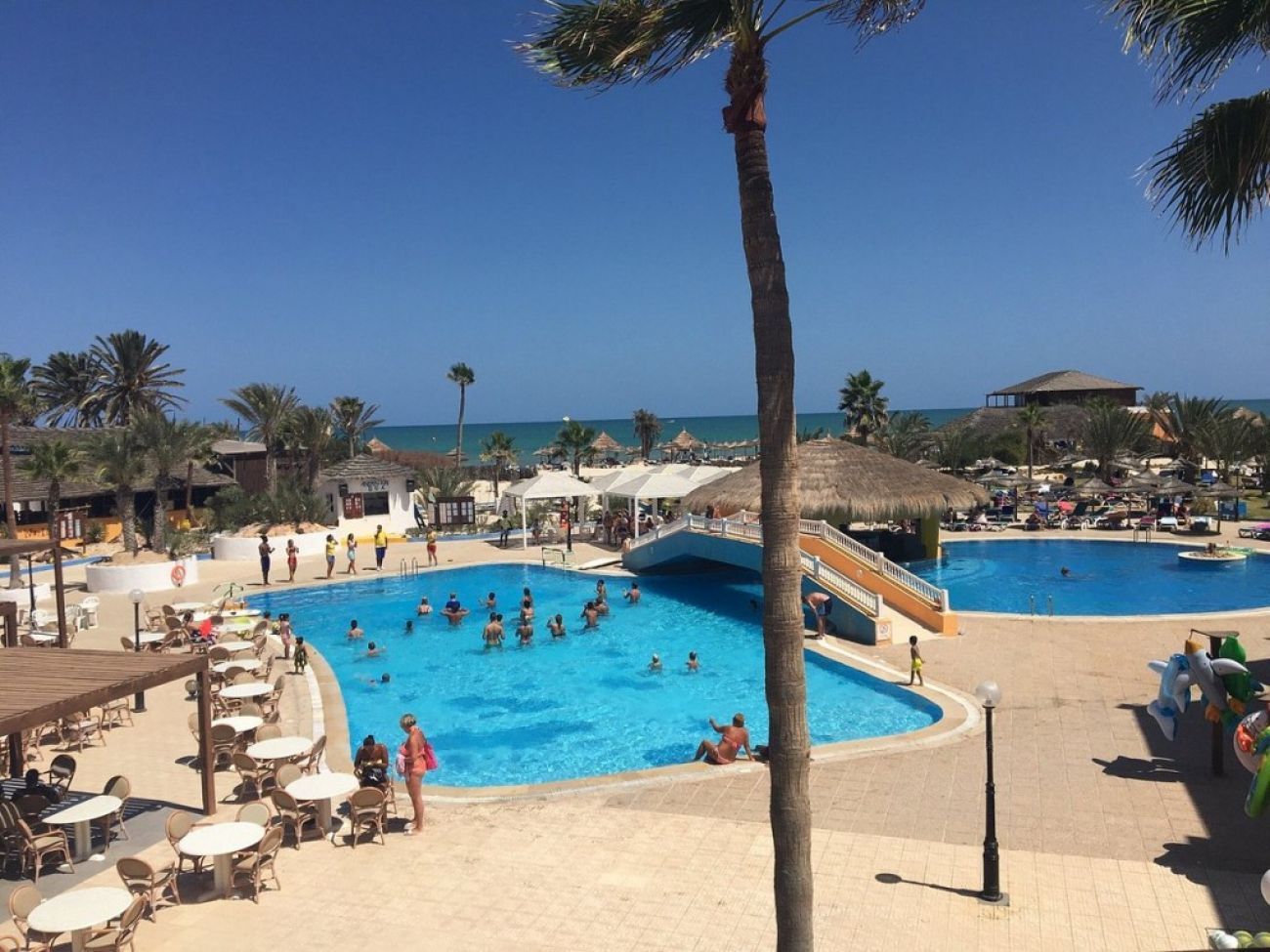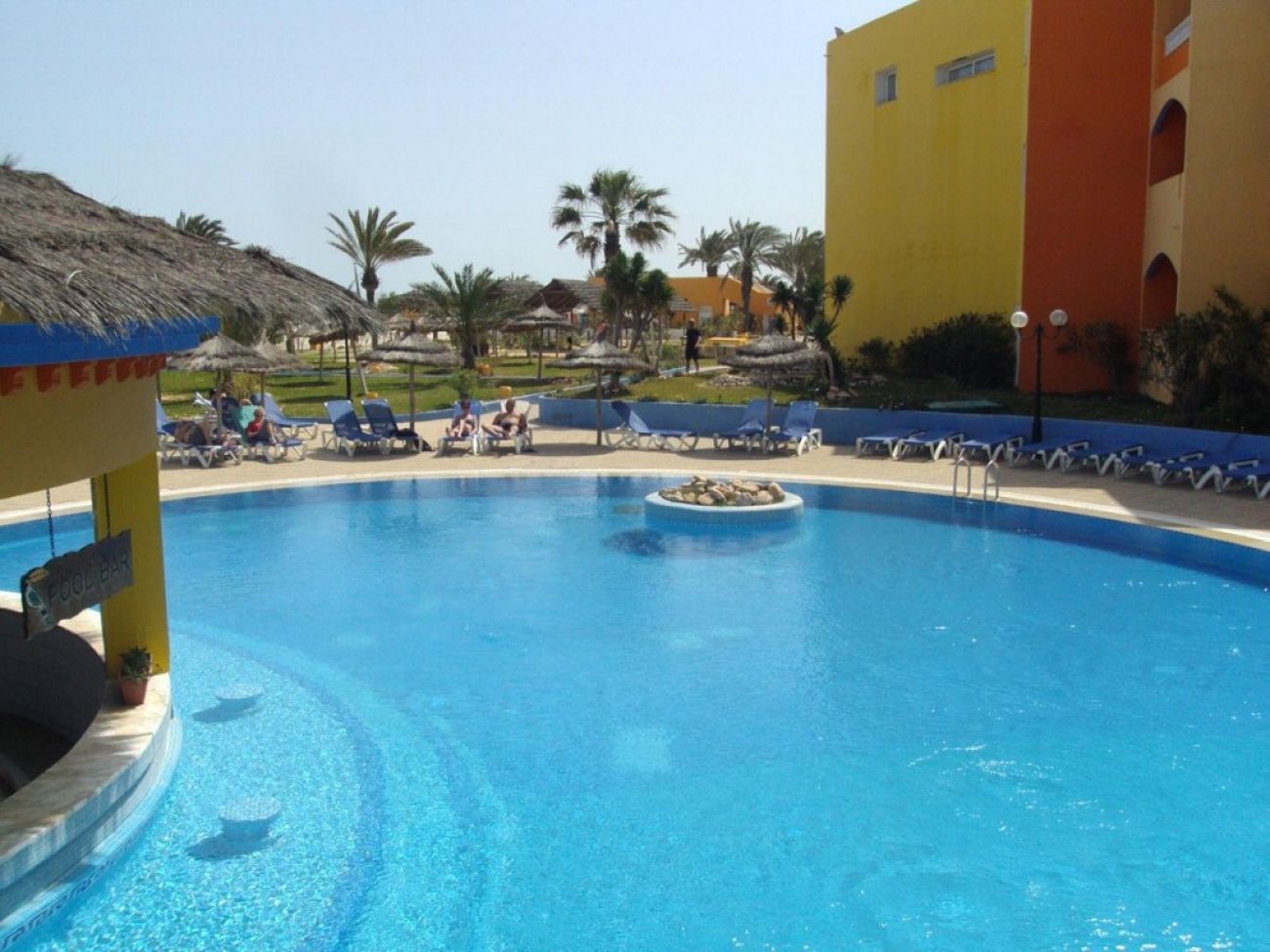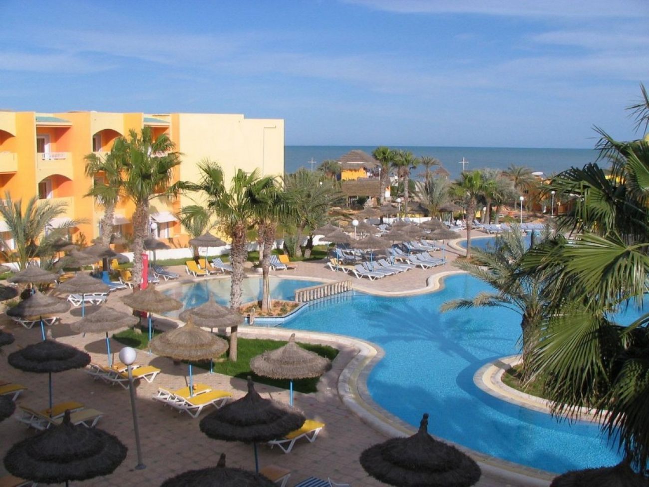 Разположение: Хотела се намира на 25 км от летище Джерба и на 14 км от главния град „Houmt Souk“, на североизточното крайбрежие на острова. Той е напълно климатизиран, изграден е в 2 сгради на 2 етажа, в сърцето на буйна градина от 6,5 хектара, засадена с палми, маслинови дървета и мимози. Хотелът е разположен директно на красив пясъчен плаж.