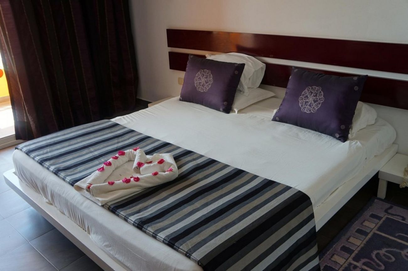 Стаи: Хотелът разполага с 450 двойни и тройни стаи, от които 92 свързани помежду си и 4 апартамента: 3 старши апартамента и 1 президентски апартамент; Всички приятно декорирани в екзотичен стил, повечето от които са с изглед към морето, оборудвани с баня или душ, тоалетна, климатик (топло и студено) с индивидуална настройка, телефон, сателитна телевизия, теракотен под, балкон, сейфове в стаите и минибар .