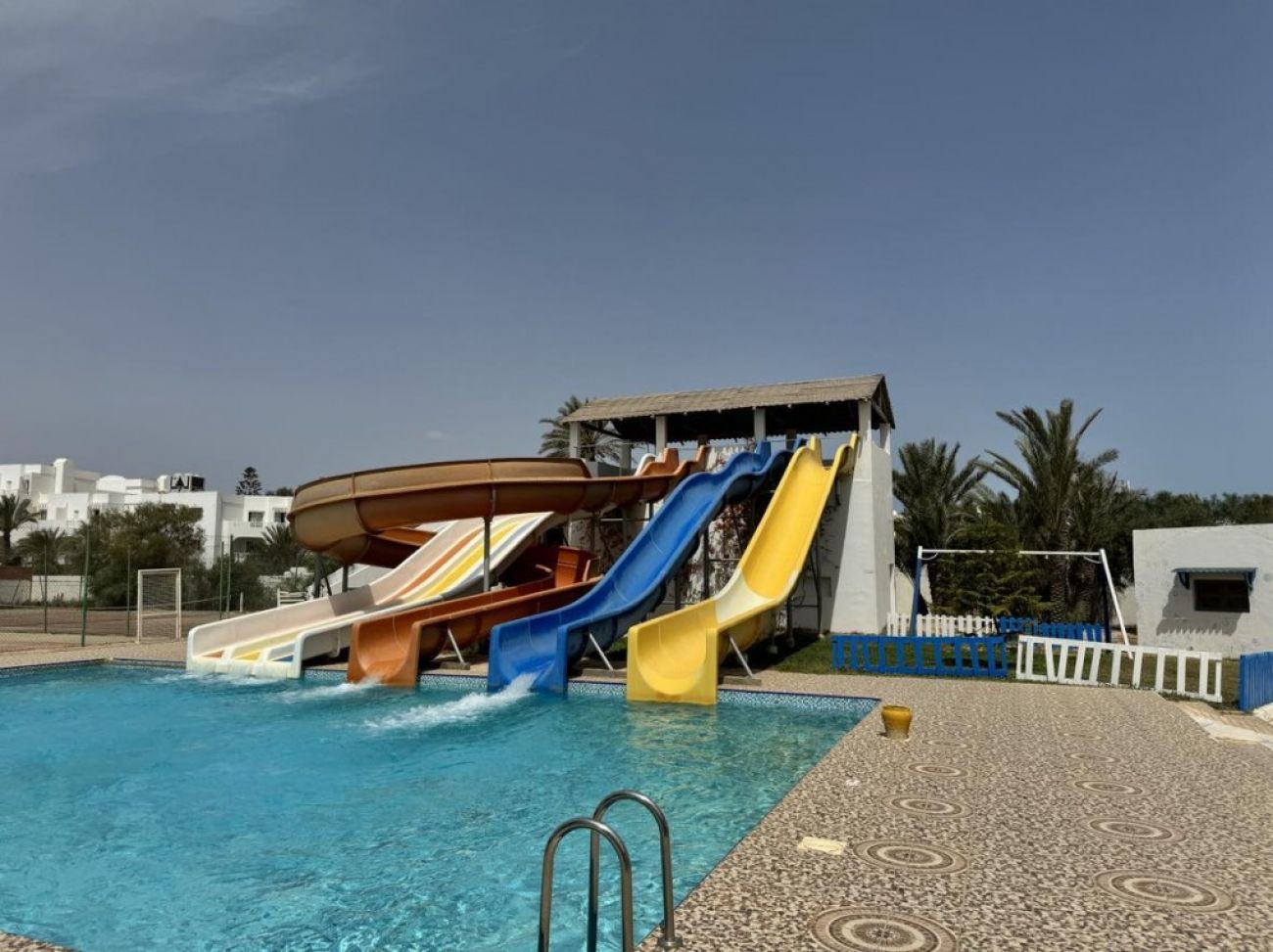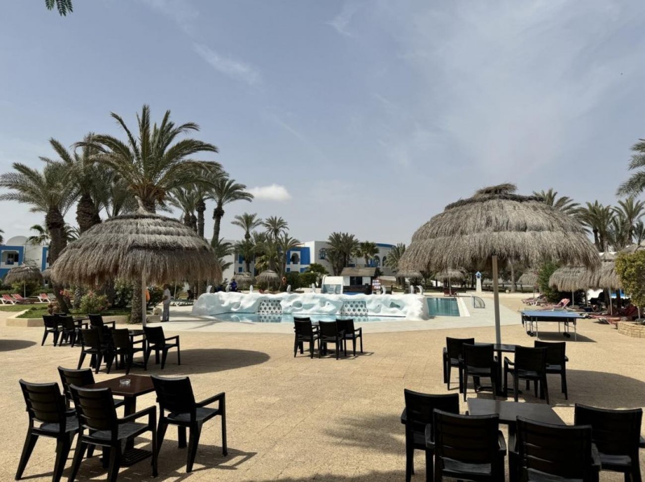 На територията на хотела: Има два външни и един вътрешен басейн, както и безплатен аквапарк. Има Тунизийски а ла карт ресторант гостите могат да го посетят безплатно веднъж за седемдневен престой, бар до басейна, ресторант на шведска маса, кафене, тенис корт, безплатен паркинг, фитнес, водни спортове. Интернет има само на рецепция