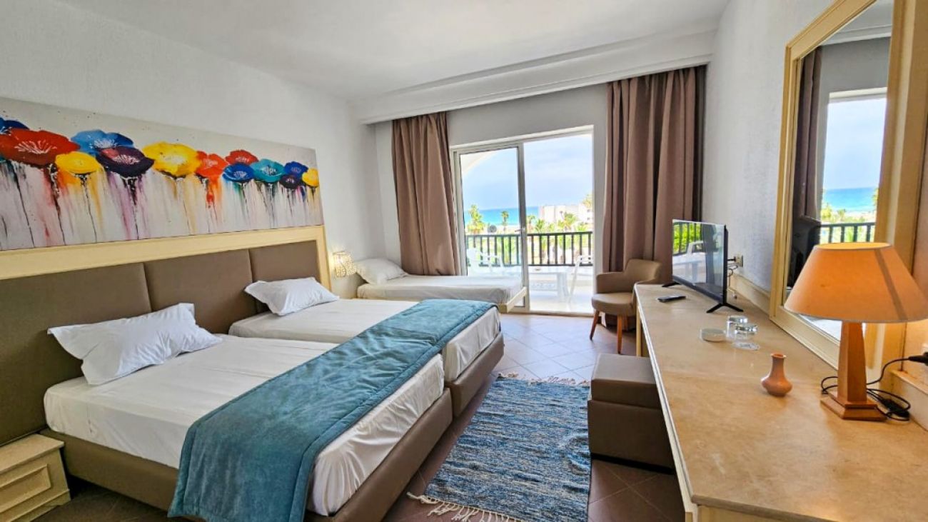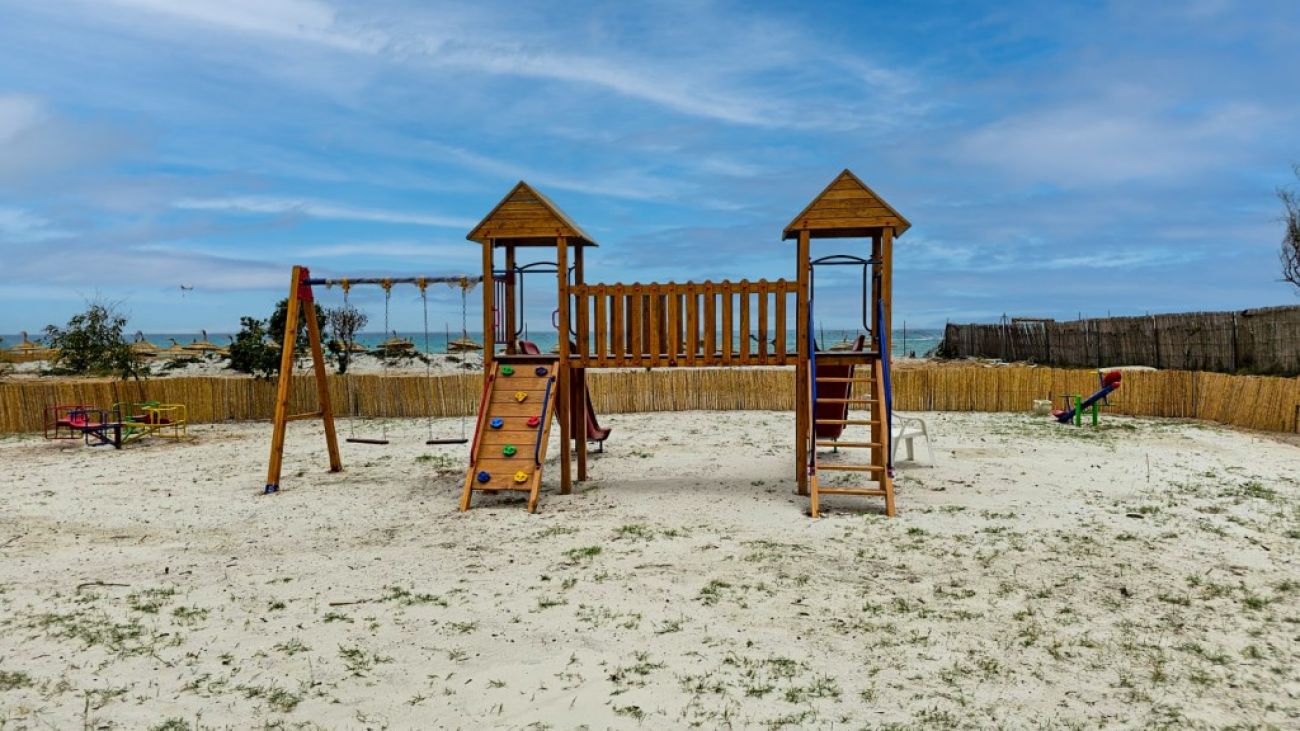 Разположение: На красивото си местоположение, точно до морския плаж Turquoise de Mahdia, го прави идеалното място за любителите на слънцето, включително и за тези които си търсят едно спокойно обежище. Разположен на 4 км от центъра на Махдия, на 4 км от плажа Корниш Махдия и на 45 км от международното летище Монастир и на 110 км от летище Енфида.