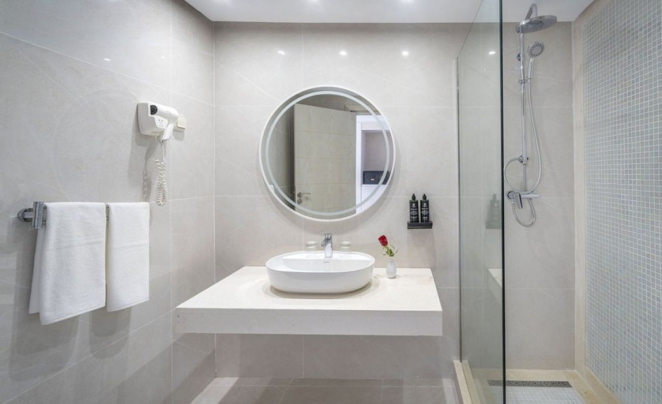 В стаите: Хотелът разполага с 216 стаи, разположени в основна сграда с асансьор - Double Room (50 кв.м), Garden View Room (50 кв.м), Sea View Room (50 кв.м), Interconnecting Room (състоят се от две стаи, свързани с врата), Suite Junior Sea View, Superior Family Garden View (65 кв.м), Suite Garden View (85 кв.м), Suite Sea View (85 кв.м). Всички стаи са оборудвани с балкон или тераса, Wi-Fi, сейф, мини бар (зареден с вода), телевизор, кана за кафе и чай, баня с душ или вана, сешоар, халат и чехли, тоалетни принадлежности. Почистване на стаите - всеки ден.