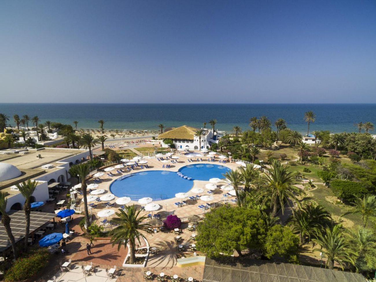 Собствен, пясъчен плаж пред хотела. Чадъри и шезлонги на плажа и при басейна - безплатно. Плажни кърпи - срещу депозит 30 TND и такса 1 динар на ден.