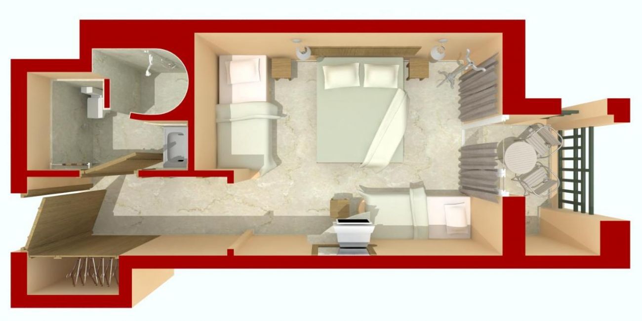 Всички стаи са оборудвани с климатик, телевизор, баня с душ/вана, сешоар, мини бар (платен и на запитване), сейф (със заплащане) балкон или тераса. Почистване на стаите - всеки ден.