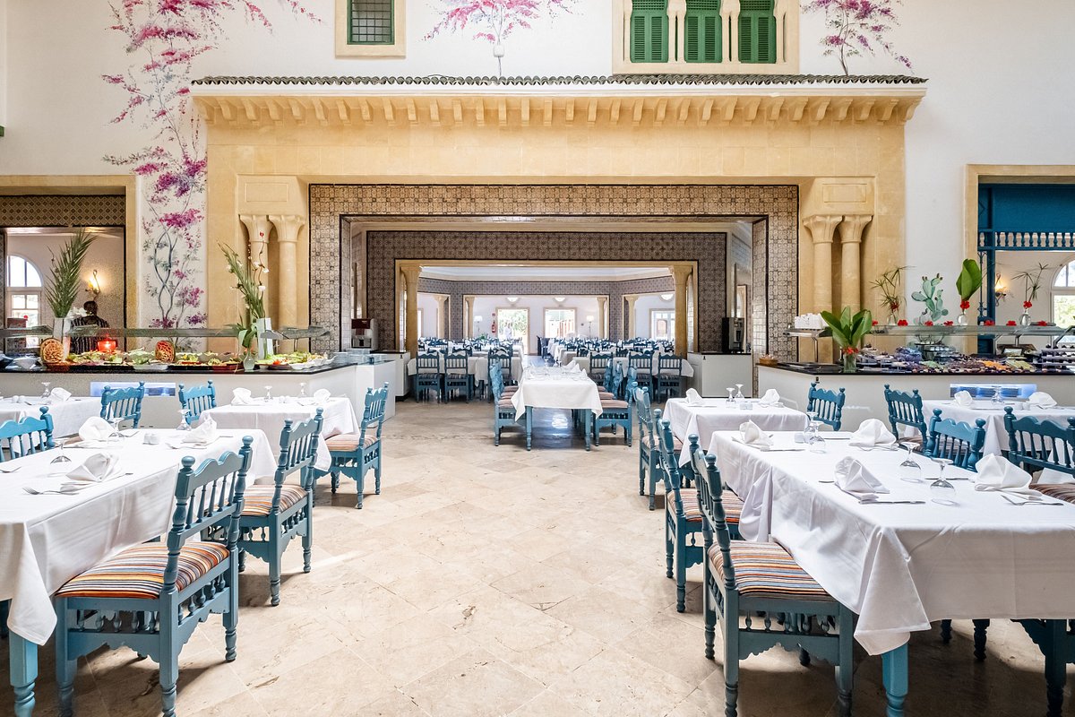 Основен ресторант Zeituna, 3 тематични а ла карт ресторанта, всеки от които може да бъде посетен безплатно веднъж по време на престой след предварителна резервация (в хотел Medina Belisaire & Thalasso със средиземноморска кухня, в хотел Medina Diar Lemdina с мароканска кухня, в хотел Medina Solaria & Thalasso с италианска кухня, лоби бар Shark Bar, бар басейн, плажен бар, мавританско кафене (срещу заплащане), 2 открити басейна, 1 закрит басейн, Таласо център, денонощна рецепция, 4 конферентни зали, обмяна на валута, анимация.