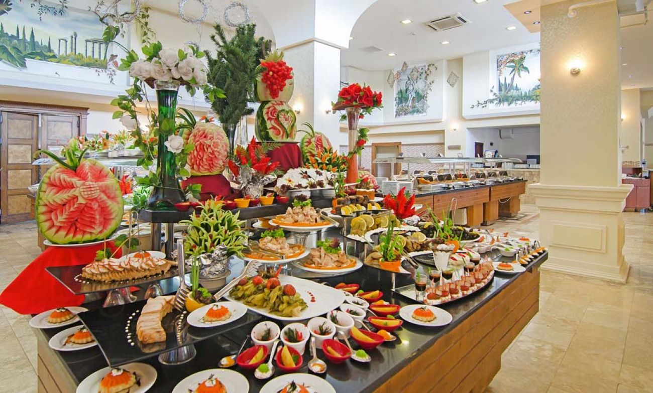 All inclusive – закуска, обяд и вечеря, междинни хранения, местни алкохолни и безалкохолни напитки - без лимит (съгласно концепцията на хотела).