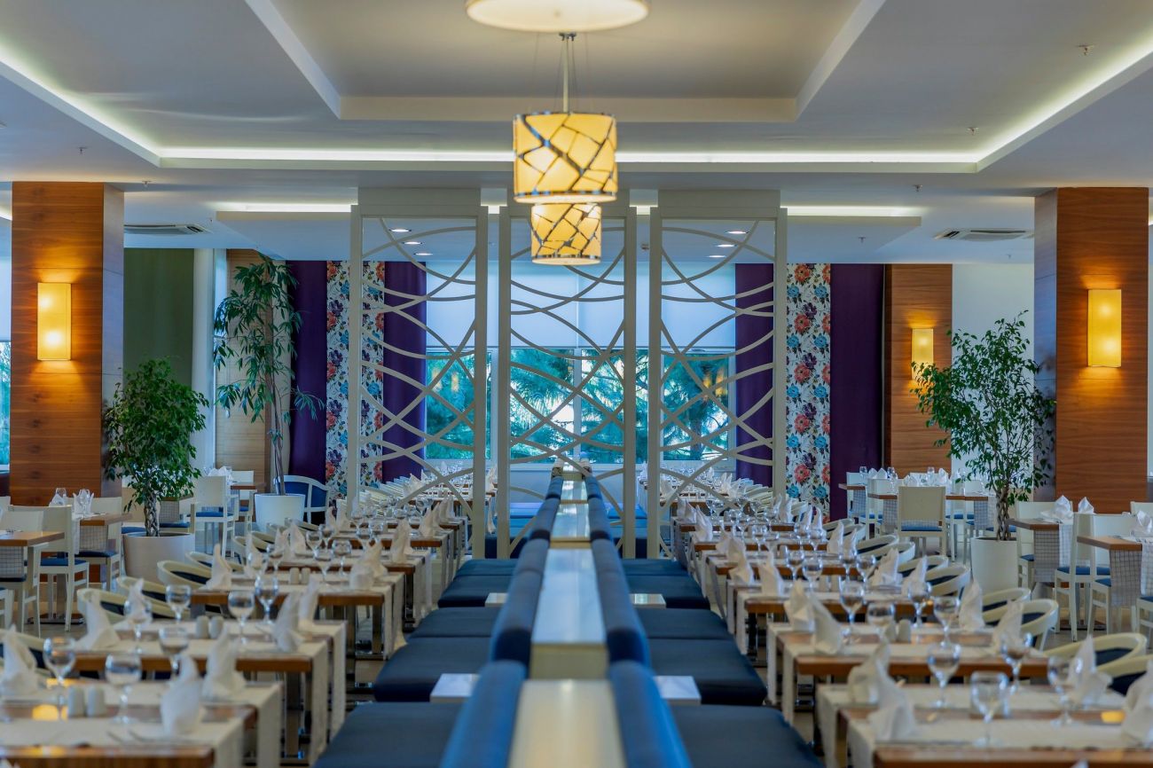 Работно време на основния ресторант: Закуска 07:00-10:00, късна закуска 10:00-11:00, обяд 12:30-14:30, вечеря 19:00-21:30, нощни закуски 23:00- 06:00 часа. Бюфет.