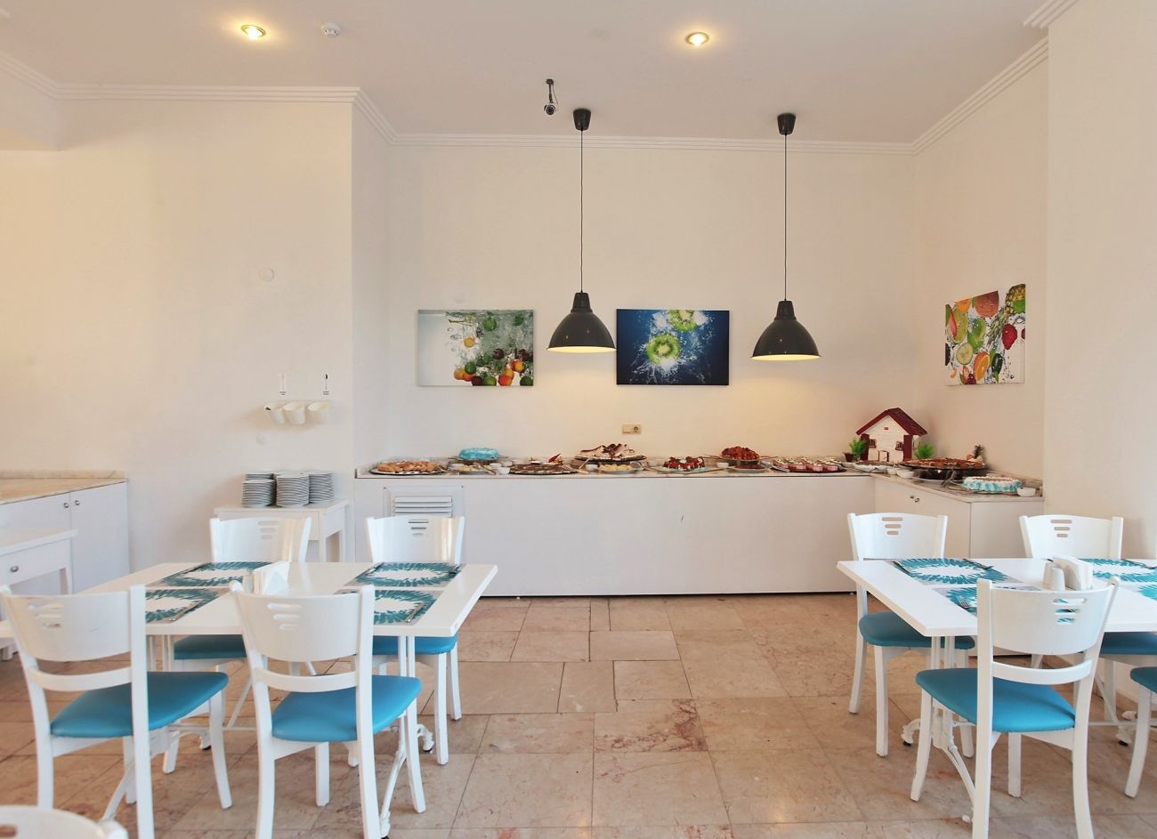 Хотелът разполага 137 стаи, от които 127 стандартни (103 с изглед море и 24 с изглед градина, 20-24 м²), 8 дуплекс фамилни (2 единични легла на долния етаж и спалня на горния етаж, без свързваща врата, 25-26 м²), 1 суит и 1 disabled (пригоденa за хора с ограничена подвижност - 30 м²). Всички стаи са оборудвани с климатик, телевизор, телефон, баня с душ/вана, сешоар, минибар, сейф (безплатен), балкон.