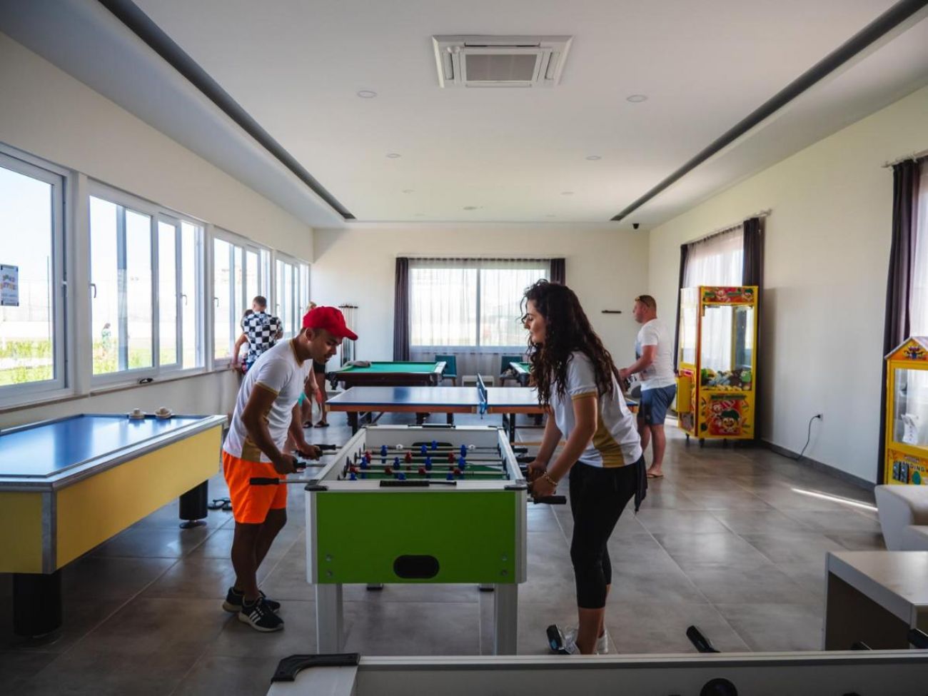 За децата: 2 открити детски басейна и 1 закрит, детска площадка, мини клуб (4-12 г), рисуване на лица, форми от балони, мини диско, детска анимация.