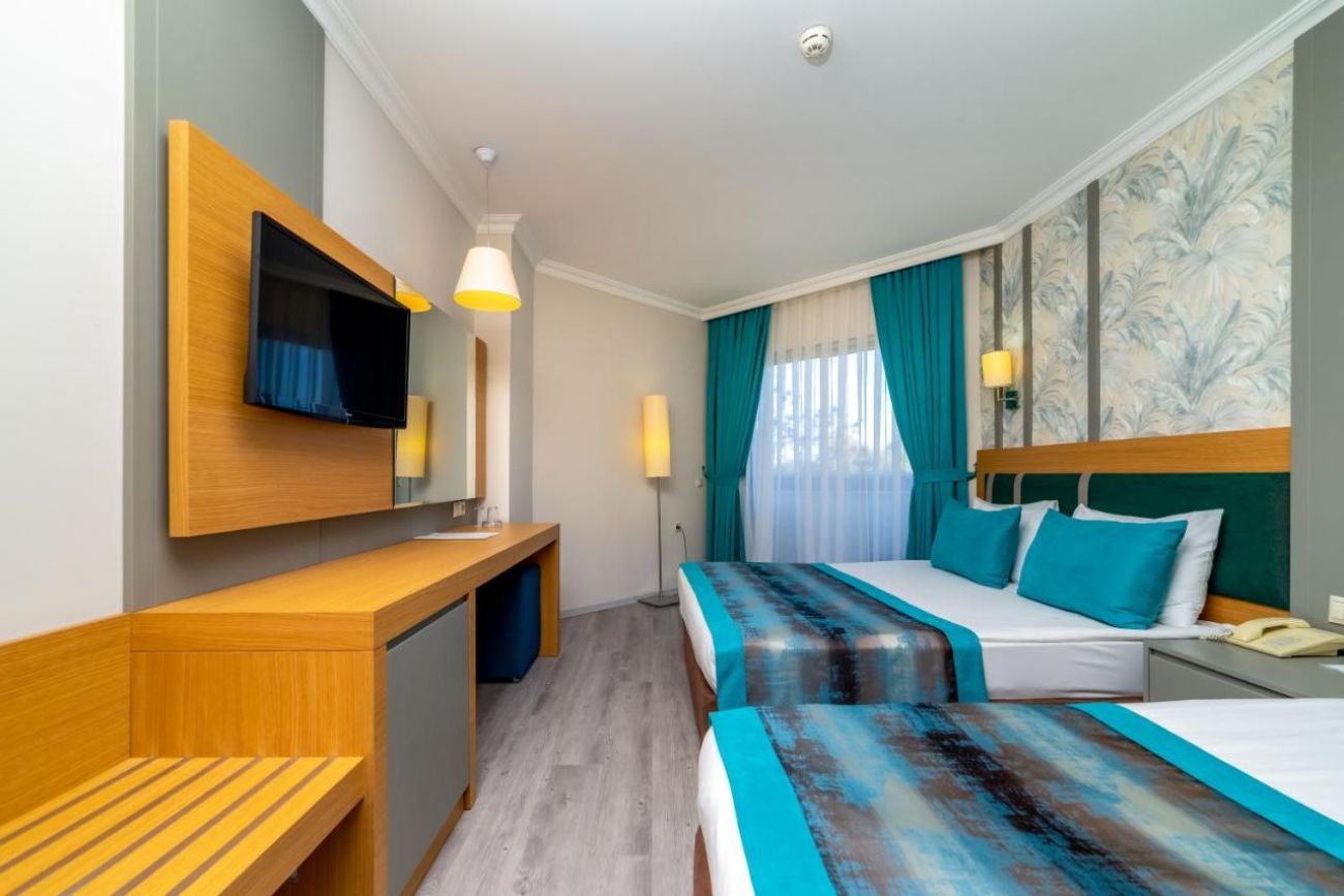 Основен ресторант, а-ла-карт ресторанта (рибен), 4 бара, дискотека, 4 октрити басейна, 2 водни пързалки, СПА център, 2 конферентни зали. Безплатни услуги: Сауна, турска баня, фитнес. Платени услеги: Масажи, пилинг, билярд, водни спортове, WiFi интернет За децата: детски басейна, мини клуб (4-11г.), тийн клуб (12-16г.), мини диско.
