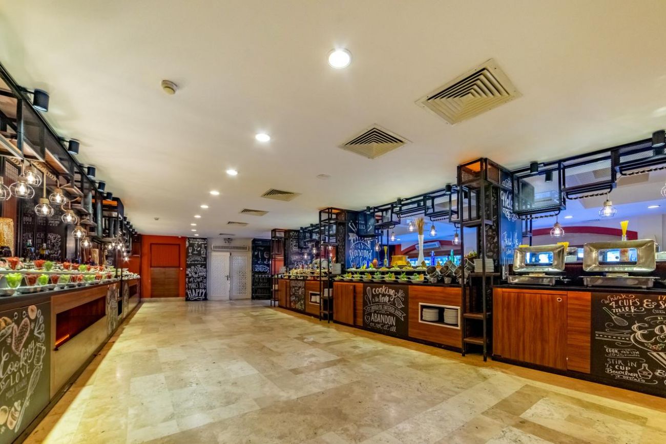 Основен ресторант, 3 а-ла-карт ресторанта (рибен, средиземноморски, турски – 1 безплатно посещение при минимум 7 нощувки), 4 бара, 2 открити и 1 закрит басейн, 3 водни пързалки, ТВ и кинозала, салон за красота, фризьор, пералня, магазини, обменно бюро, коли под наем, WiFi интернет (платен).