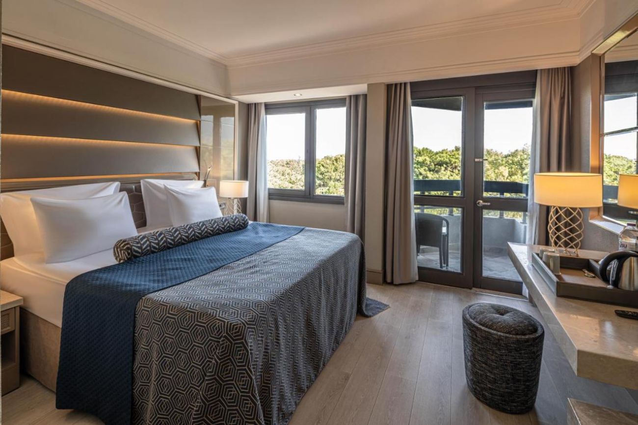 Стаи Main Building: 144 Standard Room Land View (спалня с двойно или две единични легла, всекидневна, изглед суша – 39 м2); 40 Standard Room Partial Sea View (спалня с двойно или две единични легла, всекидневна с допълнително легло, частичен изглед море- 39м2); 13 Junior Suite Land View Main Building (спалня с двойно легло и кът за сядане, изглед суша – 48м2); 13 Junior Suite LW with Terrace (спалня с двойно легло и кът за сядане, изглед суша – 48м2); 12 Junior Suite SW with Terrace (спалня с двойно легло и кът за сядане, изглед море – 48м2); 18 Family Suite Main Building (спалня с двойно легло, всекидневна с две допълнителни легла, 2 бани, изглед суша или градина – 75м2).