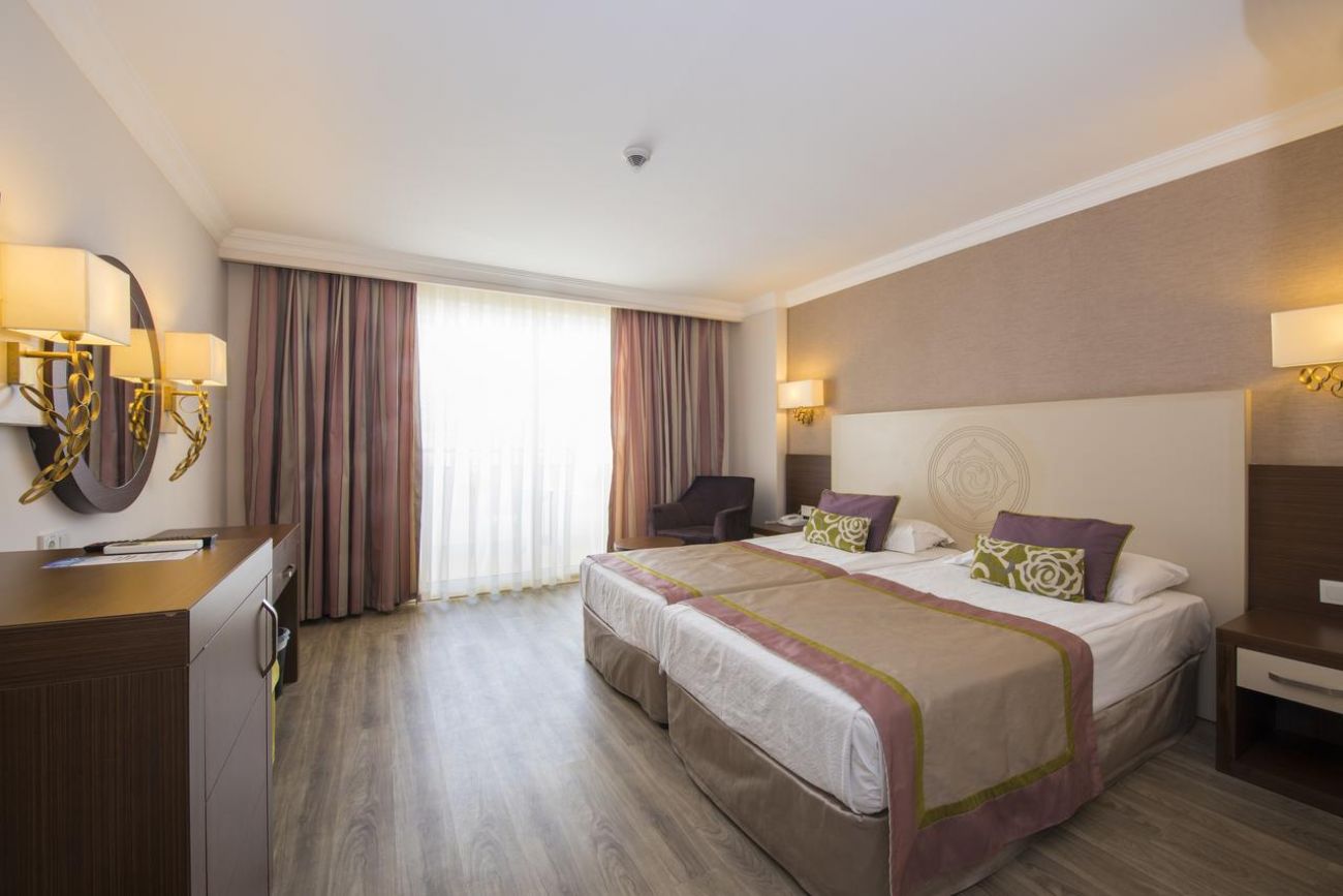 Хотелът се състои от 343 стаи, от които 158 стаи Standart Room Land View; 124 Standart Room Sea View; 24 Anex; 8 Suite, 5 Family Room . Всички стаи са оборудвани с: индивидуален климатик, телевизор, мини бар (платен), сейф (платен), баня с душ или вана, сешоар, телефон, балкон, сет за кафе/чай. Всекидневно почистване на стаите.