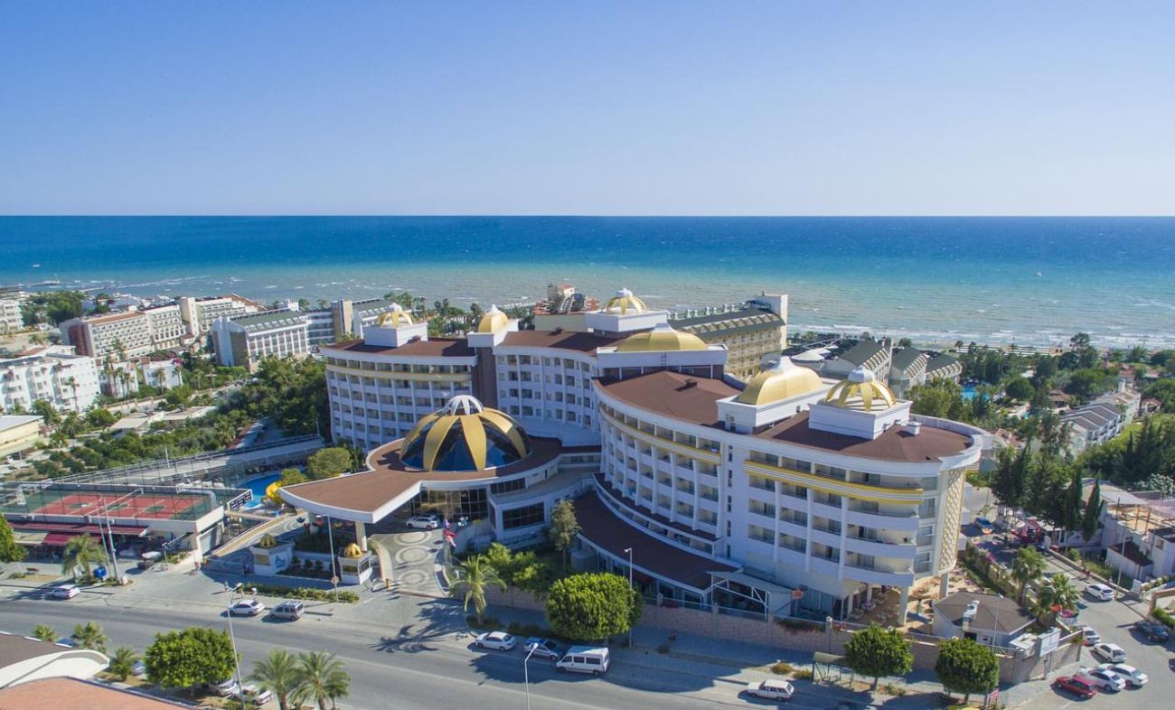 Oсновен ресторант, 2 а-ла-карт ресторанта (турски и рибен -платено), лоби бар,бар на плажа, снек панорамен ресторант, воден бар, дискотека, 2 басейна, вътрешен басейн (работи през зимата), водни пързалки, салон за красота, СПА център, фитнес, сауна, парна баня, релакс стаи, масажи, турска баня, анимация, магазин, конферентни зали. За децата: детски басейн. Безплатни услуги: турска баня, сауна, wifi, фитнес център, тенис на маса, тенис на корт, дарц, боча, игри до басейна и на плажа, плажен волейбол, гимнастика, Платени услуги: джакузи, билярд, масаж, факс, лекар, химическо чистене, коли под наем, джет, парасейлинг, осветление и екипировка за тенис корт.