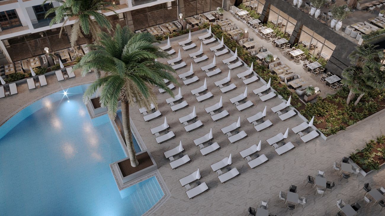 Хотелът разполага с 272 стаи, разположени в една 8 етажна сграда. Стаи: Standart double (32,5 м²),Standart swim up (32,5 м²), Family (65 м²). Всички стаи са оборудвани с: климатик, сателитна телевизия, телефон, баня с душ/вана, сешоар, мини бар (безплатен), сет за кафе/чай, сейф, Wi-Fi, балкон. Почистване на стаите - всеки ден, смяна на бельото - 3 пъти седмично.