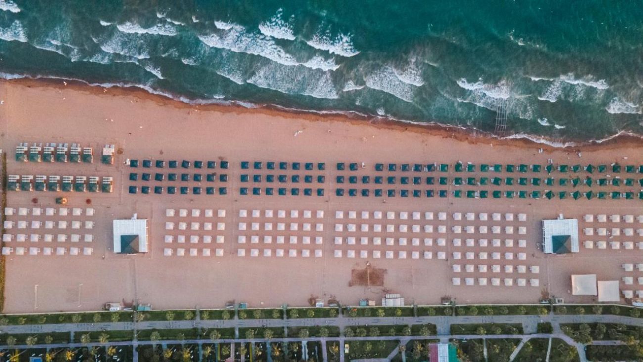 Собствен, пясъчен, с дължина на плажната ивица 500 м. Чадъри, шезлонги, матраци и плажни кърпи на плажа и при басейна - безплатно.