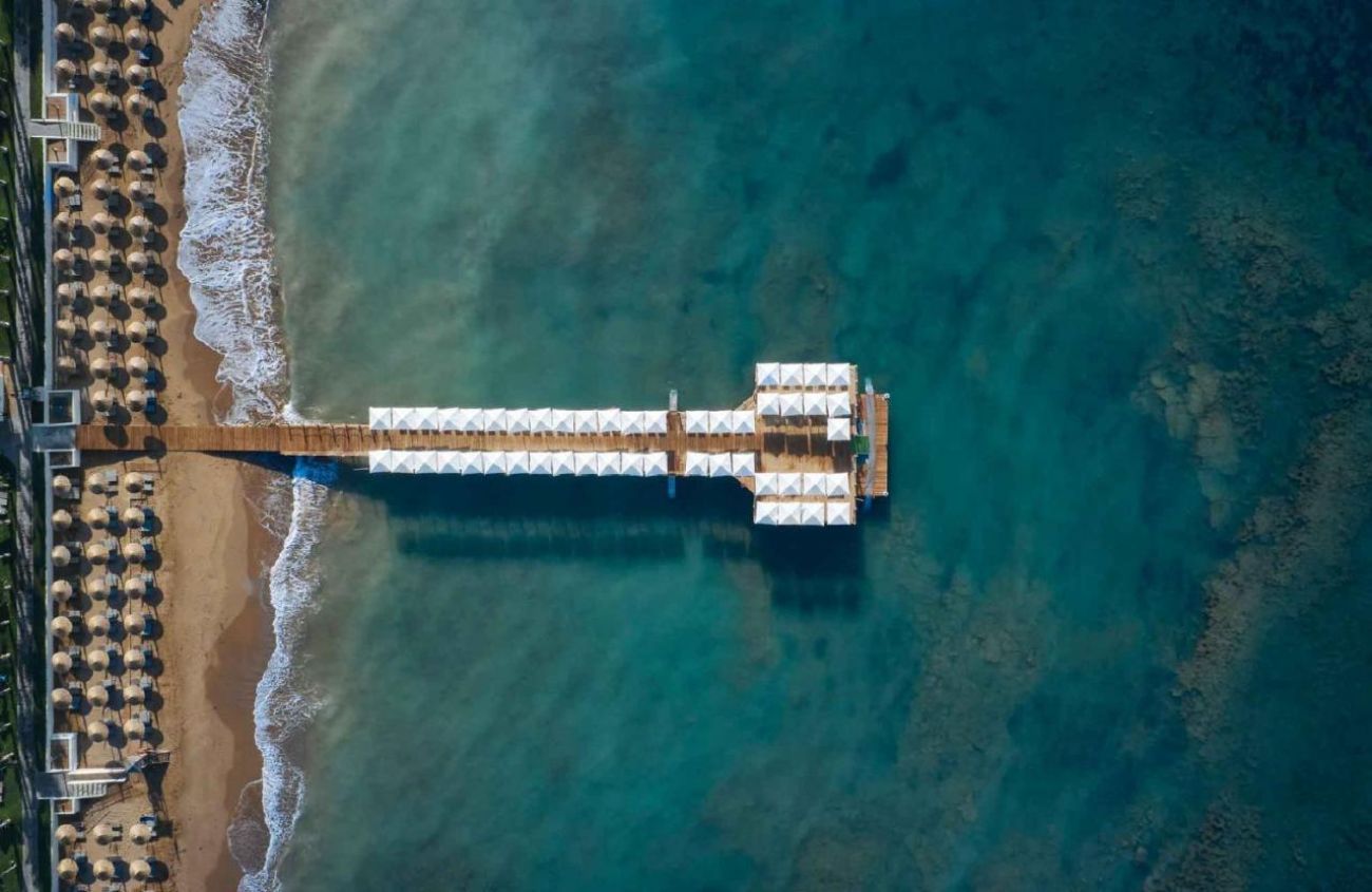 Собствен, пясък, пирс. Бар на плажа. Чадъри, шезлонги, матраци – безплатно. Плажни хавлии: веднъж на ден – безплатно. На басейна: чадъри, шезлонги, матраци – безплатно.