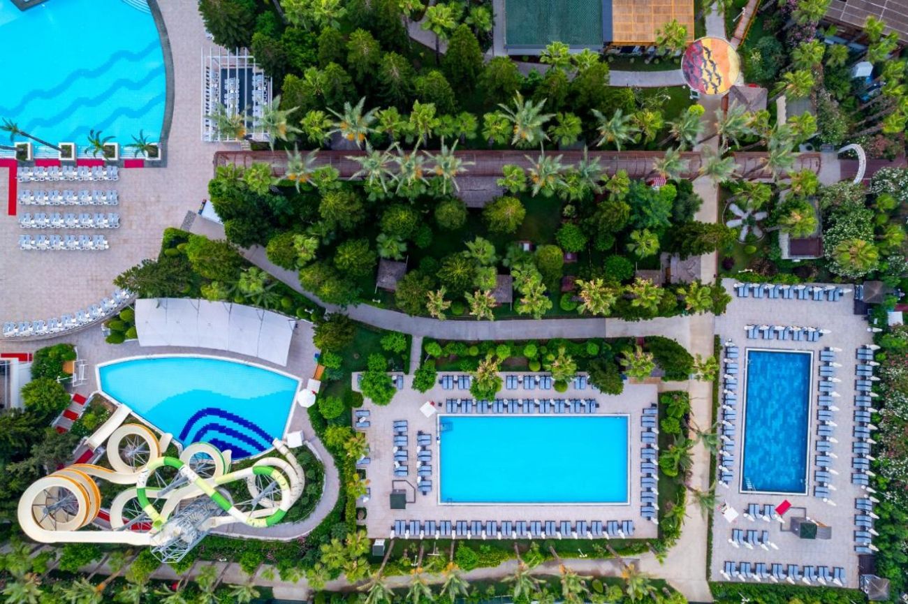 Намира се на 10 км от летище Анталия, на 15 км от центъра на Анталия, на брега на морето. Построен 2005г., на обща площ от 24 000 м2. Реновиран 2018 г.