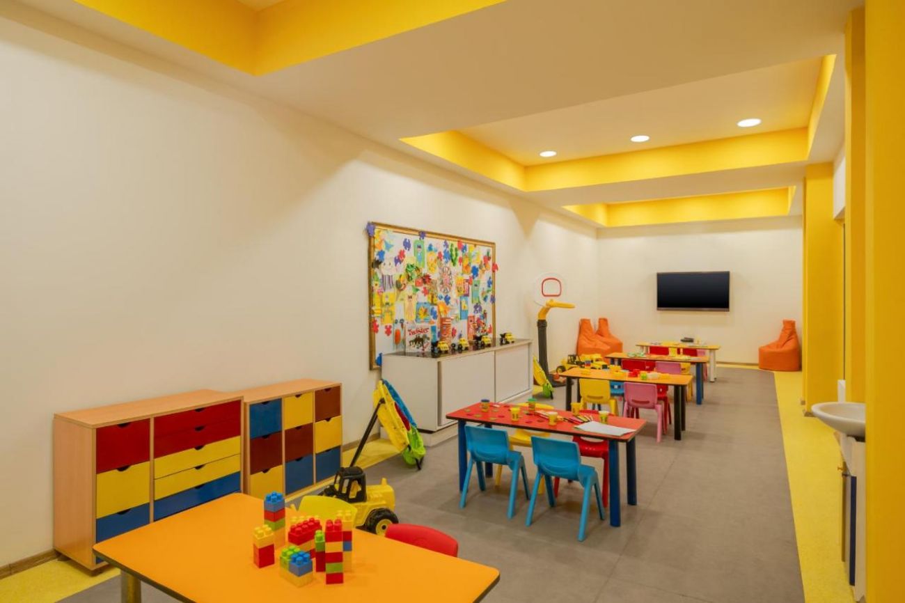 За децата: детски басейн, детска площадка, лунапарк, мини клуб (4-12г), мини диско, детско кино, детска анимация, детска количка (с депозит).
