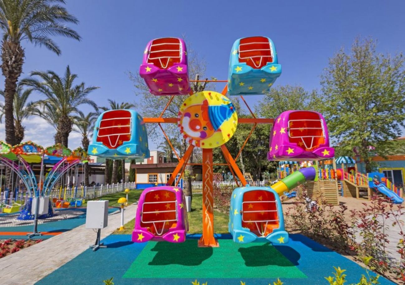 За децата: Детско меню, 3 открити и 1 закрит (отопляем през зимния период) детски басейн, детска площадка, бeйби клуб (0-4г.) мини клуб (5-12г.), тийн клуб (12-16г.), мини диско, детска анимация, детска количка (под наем).