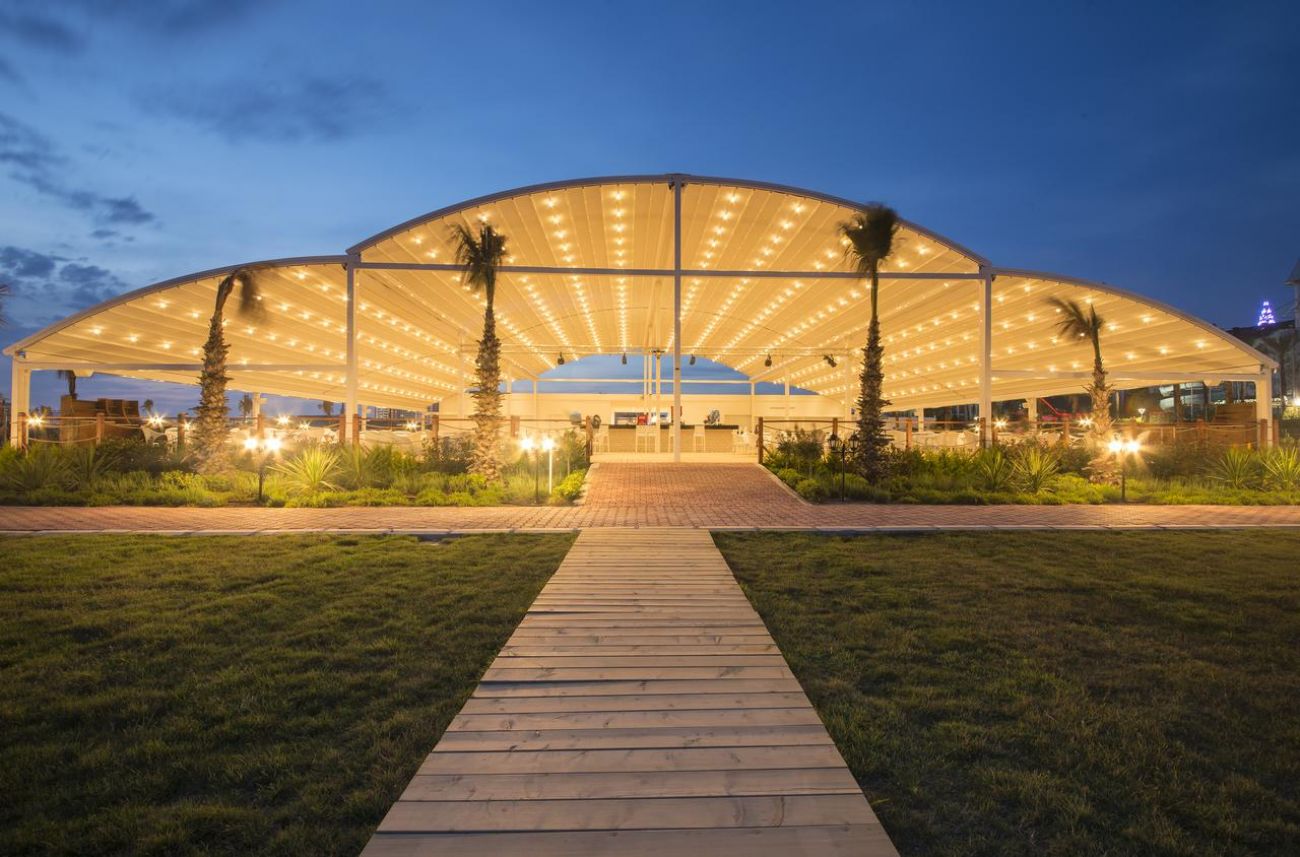 Основен ресторант, бюфет - ресторант, 7 а - ла - карт ресторанта, 4 бара, СПА център, турска баня, фитнес център, аквапарк, 4 басейна, магазин. За децата: открит детски басейн с пързалки, мини клуб Безплатни услуги: турска баня, сауна, фитнес, волейбол, баскетбол, плажен волейбол Платени услуги: масаж, боулинг, билярд Плаж: собствен, пясъчен. Чадъри, шезлонги и матраци на плажа и басейните - безплатно.