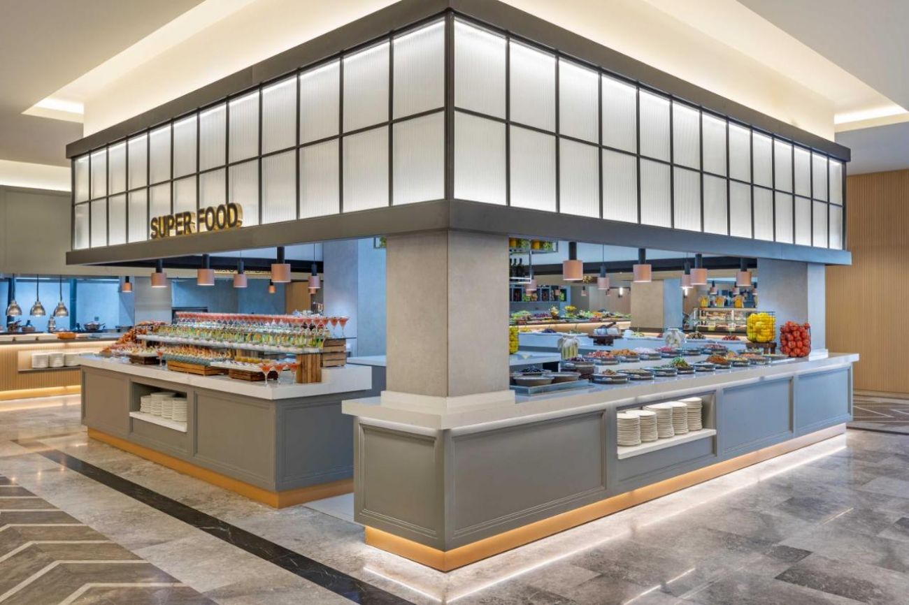Основен ресторант, 4 а-ла карт ресторанта (мексикански, италиански, турски, рибен – 1 безплатно посещение на 1 от ресторантите при минимум 7 нощувки), 13 бара, 3 открити и 1 закрит (отопляем) басейн, аквапарк, сладкарница, СПА център, конферентна зала.