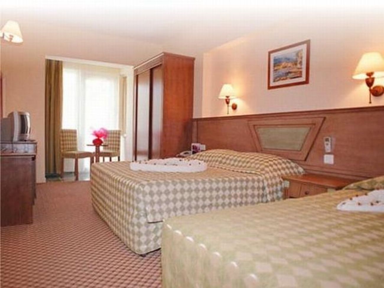 вана,балкон, минибар (платен), сейф(платен), климатик, сателитна телевизия, телефон, сешоар. Хотелът разполага с 101 стандартни стаи.
