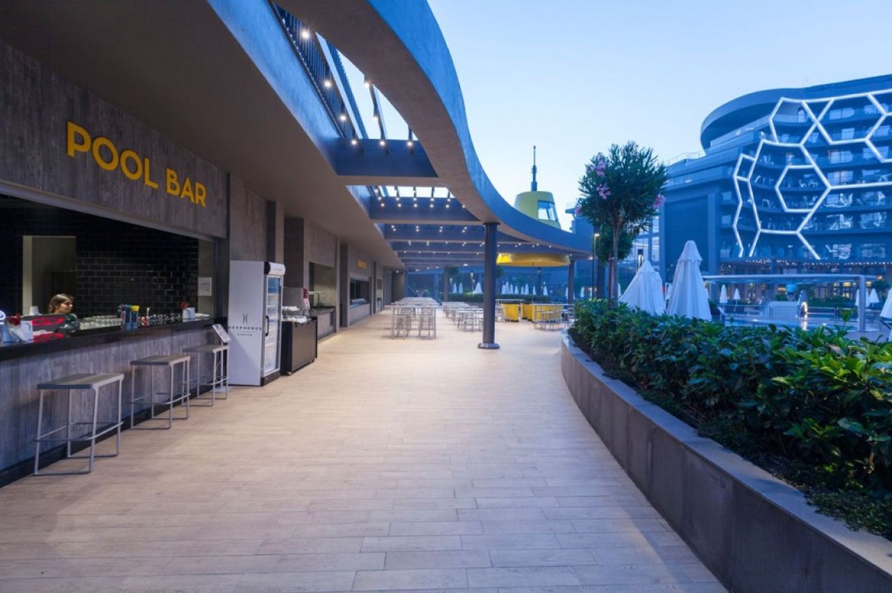 На територията на хотела: Основен бюфет ресторант, 3 бара, 2 а ла карт ресторанта – рибен и турски (едно безплатно посещение за седмичен престой, с предварителна резервация, не се допускат деца под 12 г.), 2 външни басейна (с подгряване 25 градуса), 3 водни пързалки, вътрешен басейн (с подгряване 25-27 градуса), конференти зали.