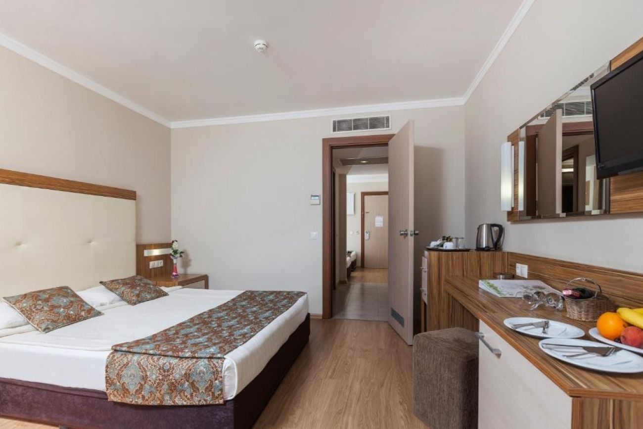 Разположение: Хотелът се намира в Евренсеки. Разположен на 200 м от морето и частния си пясъчен плаж, в голяма тропическа градина, на 6 км от Сиде и на 65 км от Анталия.