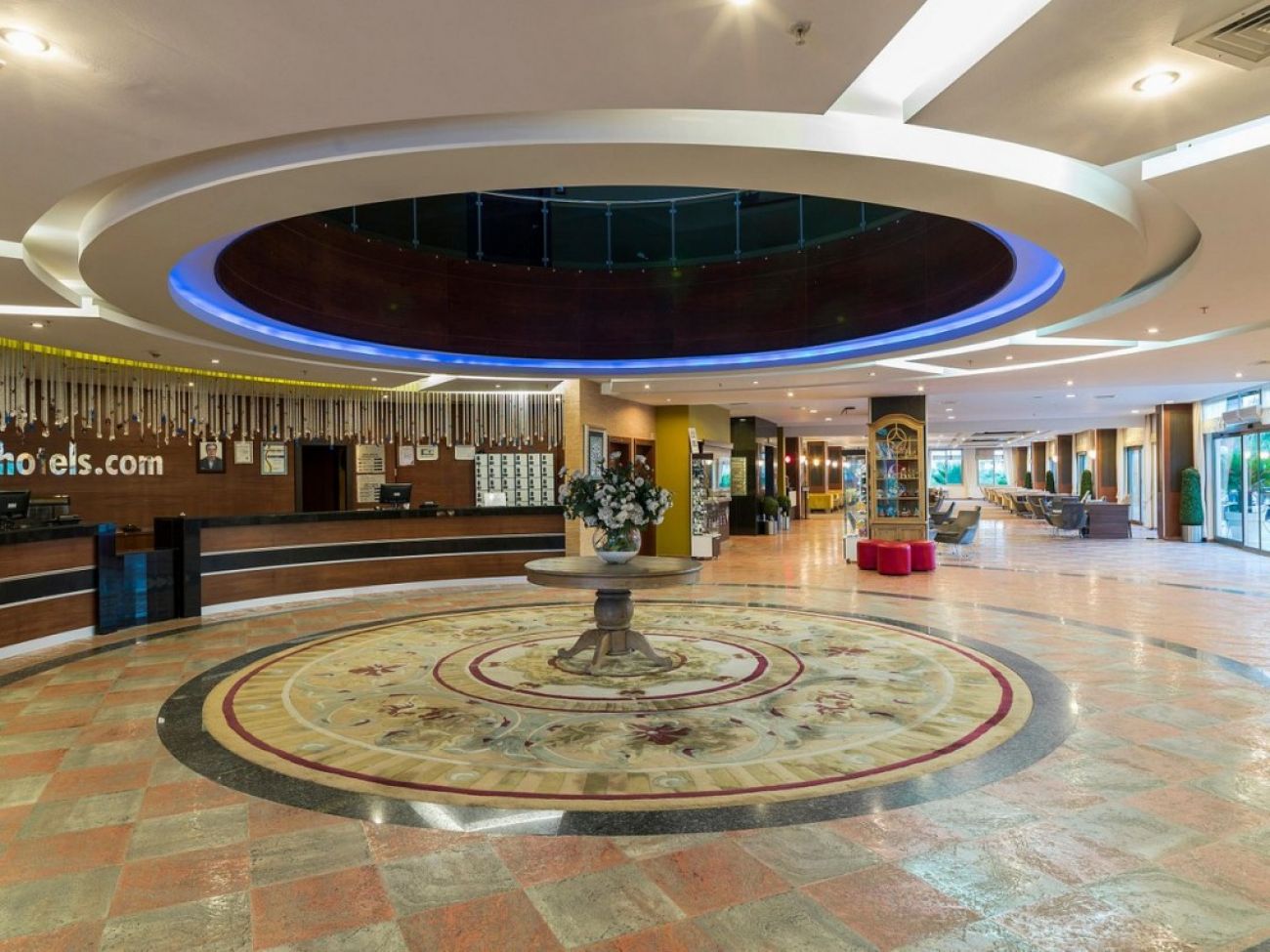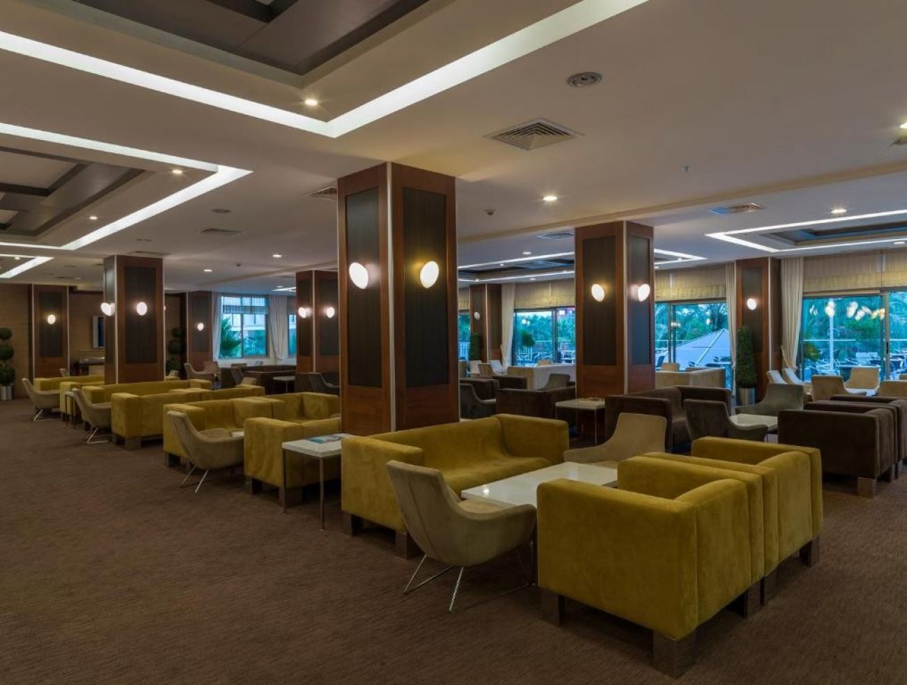 На територията на хотела: Основен ресторант, семеен ресторант, бар на плажа, градински бар, лоби бар, 1 а ла карт ресторант, ТВ кът, заседателна зала, фитнес зала, дискотека, търговски център, октрит басейн, вътрешен басейн, басейн с пързалки, различни анимационни програми, турска баня, сауна, мини голф, тенис на маса, тенис на корт, баскетболно игрище, игрище за мини футбол.