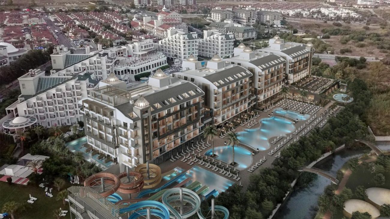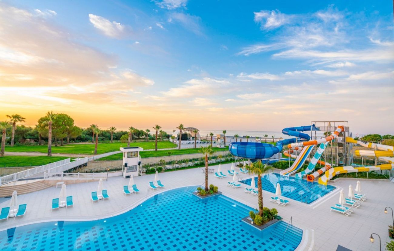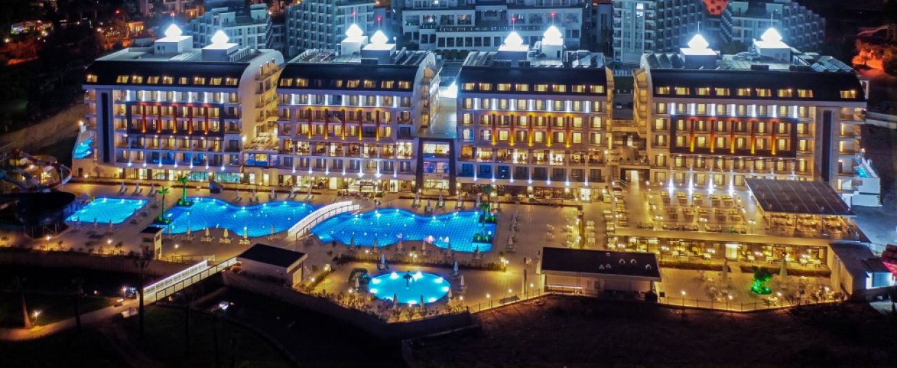 Хотелът се намира на 12 км от град Сиде, на брега на морето. Разполага с голяма зелена площ, 4 а ла карт ресторанта, няколко бара, сладкарница, както и спа център, сауна, турска и парна баня, басейни за възрастни и деца и водни пързалки. Подходящо за млади хора и двойки.