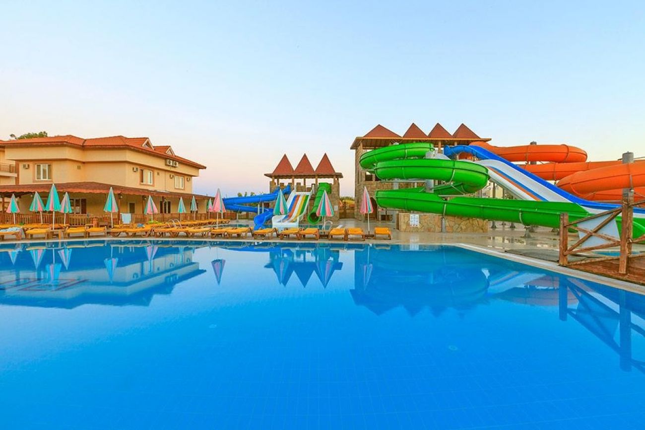 Хотелът се намира директно на брега на морето. Разполага с открит басейн, СПА център и безплатен Wi-Fi. Хотелът разполага с а-ла-карт ресторанти и лоби бар. Хотелът разполага и с аквапарк, детски басейни с водни пързалки, тераси за слънчеви бани, спортна площадка и футболно игрище. Басейнът за възрастни разполага с 4 водни пързалки, а детският с 2 малки пързалки. Деца на възраст от 4 до 12 години са добре дошли да използват мини клуба и детската площадка. Спа центърът включва сауна, турска баня и джакузи.