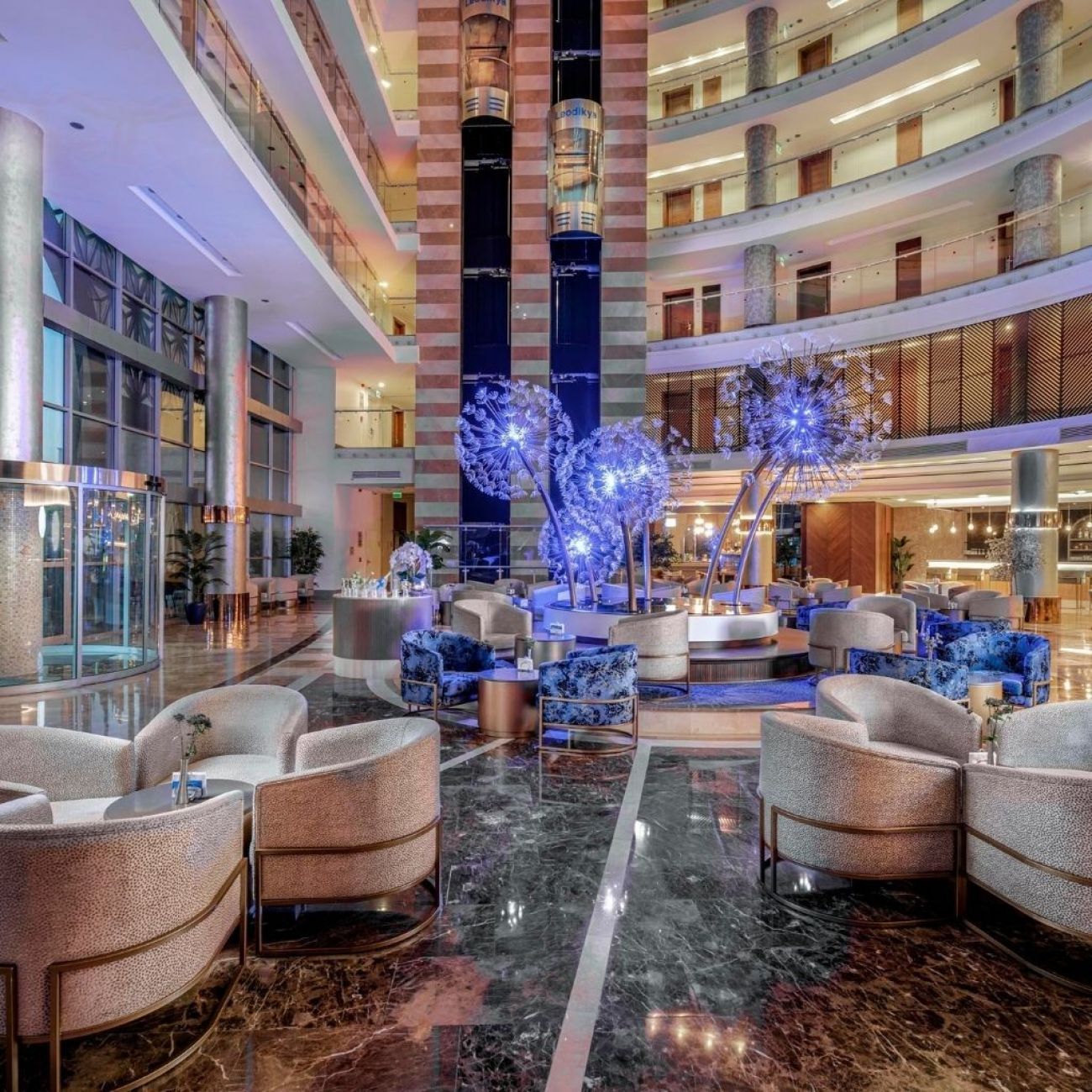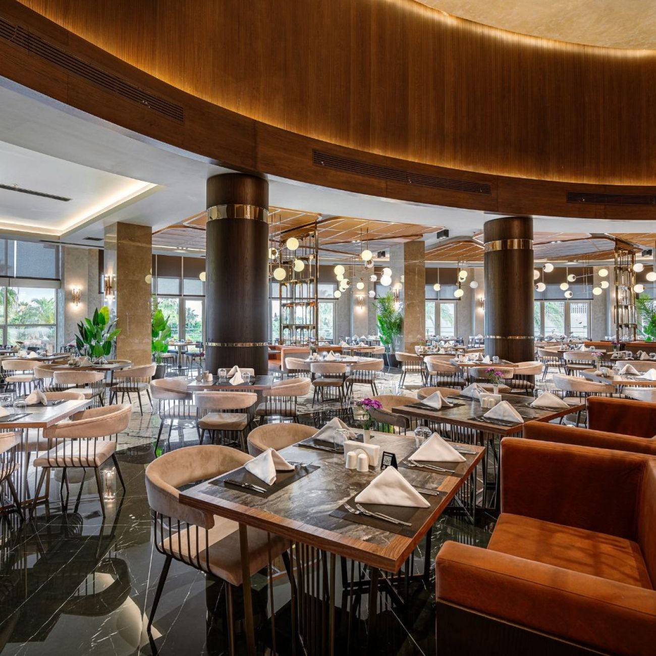 На територията на хотела: Оновен ресторант (разполага с диетичен бюфет, бюфет без глутен, прясно изцеден плодов сок (по време на закуска), 3 а - ла - карт ресторанта (едно безплатно посещение за 7- дневен престой с предварителна резервация), снек ресторант, гьозлеме, сладкарница, baby corner (бебешка храна), 7 бара, включително нощен бар, дискотека, кът за кафе, 1 открит и 1 закрит басейн, водни пързалки, магазини, СПА център, амфитеатър.