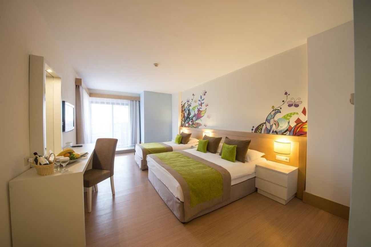 Стаи Main Building: 198 Standard room (25 м2), 12 Family room (1 спалня, 1 всекидневна, 1 баня – 40 м2), 3 Grand Suite with Jacuzzi (1 спалня, 1 всекидневна, 1 баня с джакузи – 45 м2).