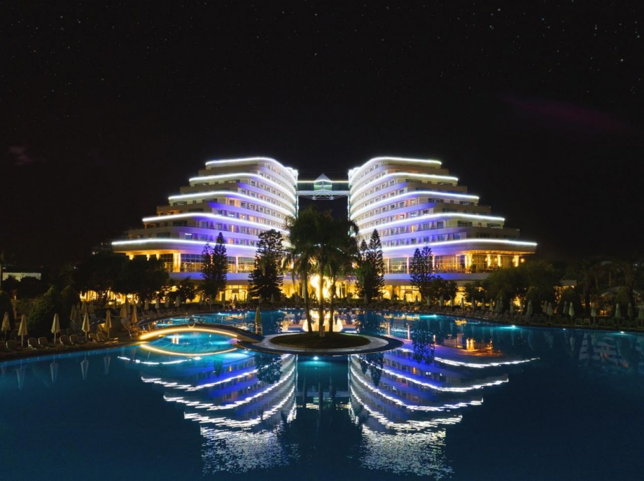 На територията на хотела: Основен ресторант, 4 а-ла-карт ресторанта (с предварителна резервацияи такса от 10 евро, мексикански, италиански, рибен и турски), 6 бара, открит и закрит басейн за възрастни, 3 водни пързалки, СПА център, турска баня, сауна, фитнес, джакузи, тенис на маса, тенис корт, баскетбол, дартс, анимация, мини-клуб, дискотека, конферентни зали.