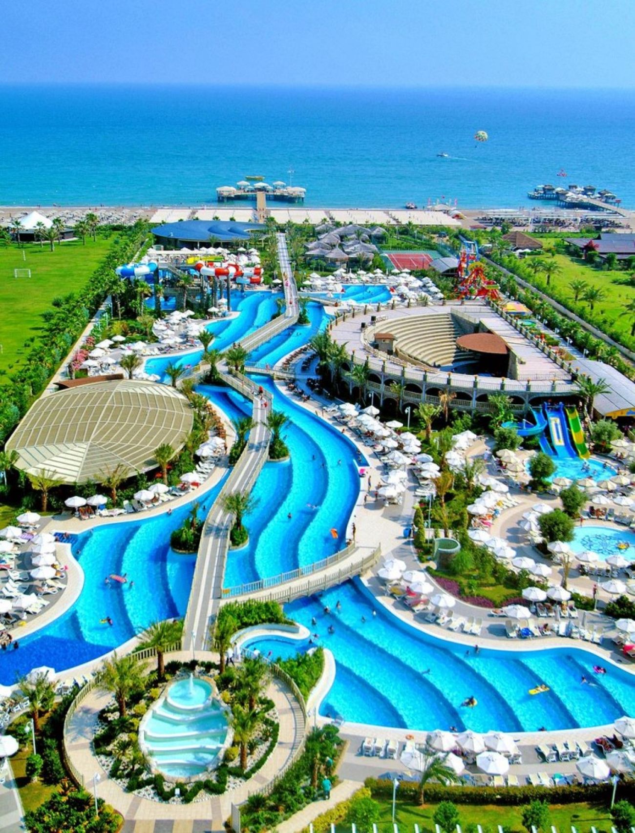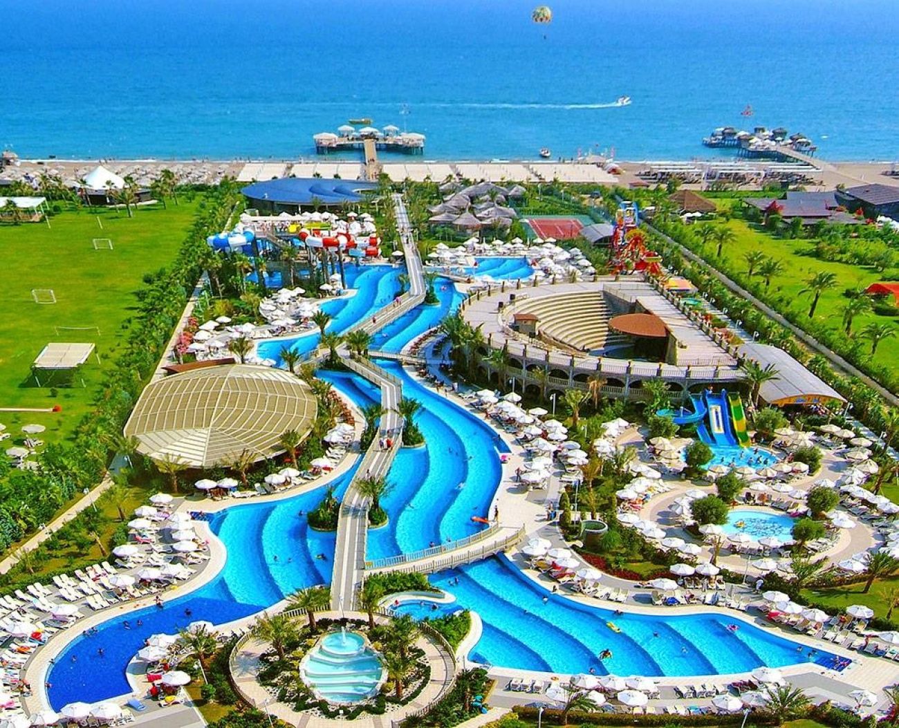 На територията на хотела: Основен ресторант (има диетична храна), 6 ресторанта a la carte (грил, италиански, мексикански, рибен, далекоизточен - с предварително запитване - пратено, отворени по график), снек ресторант, 8 бара (един от тях 24 ч.), сладкарница, дискотека, 1 открит и 1 закрит басейн (работи от 01.11 до 31.03, с подгряване), Аквапарк (5 пързалки за възрастни, в определени часове, в зависимост от климатичните условия), Спа център, магазини, 3 конферентни зали, фризьорски салон, лекарски кабинет, пералня, химическо чистене.
