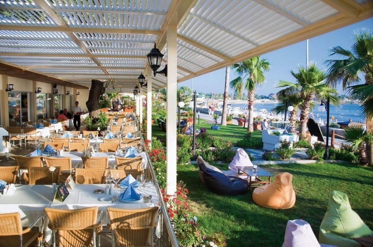 На територията на хотела: Основен ресторант с капацитет за 400 човека, три А ла Карт ресторанта (рибен, турски, италиански – веднъж безплатно посещение на един, за седмичен престой с предварителна резерация), 3 бара, дискотека (работи в определени дни, безплатн напитки до 02:00 ч.), основен открит басейн, басейн с две водни пързалки.
