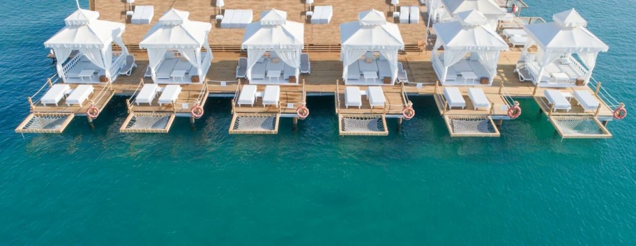 Плаж: Собствен пясъчен плаж с дължина от 165 м. Легла, чадъри, матраци, плажни кърпи - безплатно. Вход в морето - пясък, дървен кей / платформа /. Бар на плажа - безплатно. Шатри - срещу заплащане. Душове, кабини за смяна.