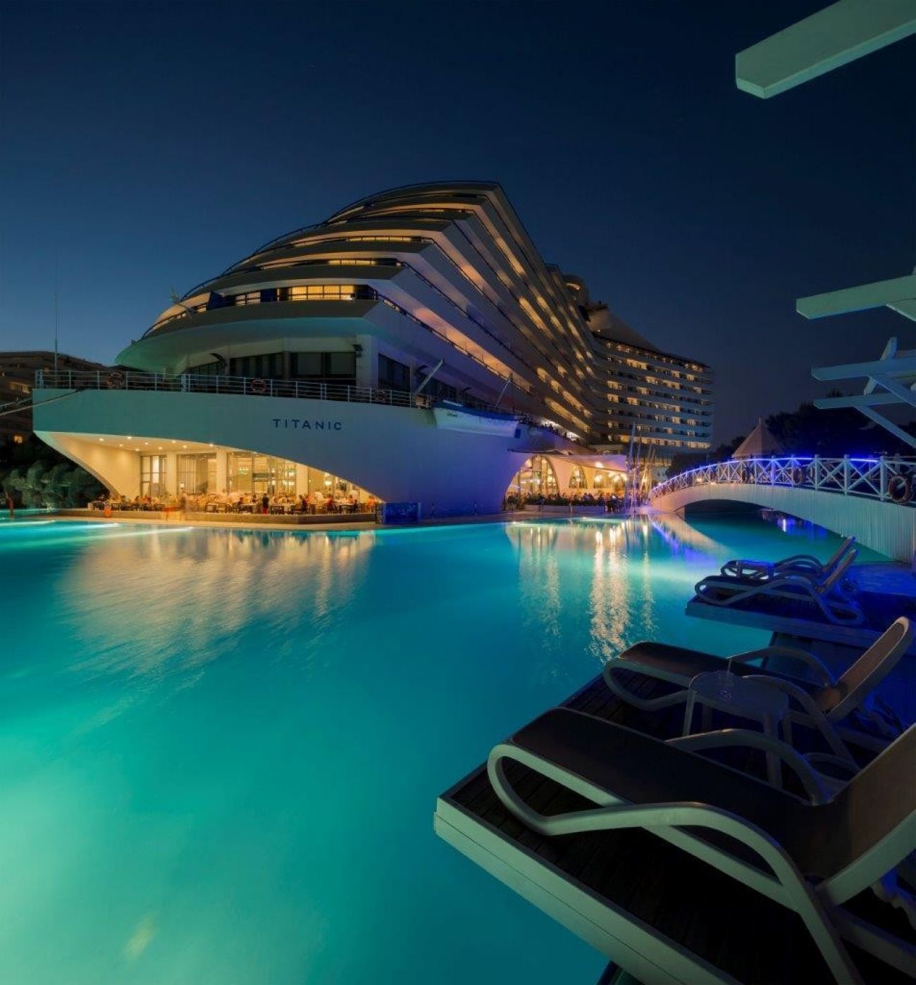 На територията на хотела: Основен ресторант, 3 а - ла - карт ресторанти (италиански, турски и рибен), 3 открити басейна, закрит басейн, закрит детски басейн, водни пързалки, барбекю, сладкарница, лоби бар , диско бар, витамин бар, боулинг бар, амфитеатър, кино, музика на живо, дискотека (безплатно).
