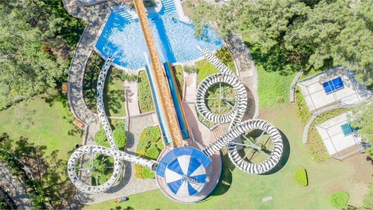 3 основни ресторанта, 5 а-ла-карт ресторанта (с предварителна резервация, срещу заплащане), 10 бара, 11 открити басейна (2 от тях отопляеми), 2 закрити басейна, аквапарк с 18 водни (разположен на площ от 22.000 м²). За децата: Baby Club ( 6м-3г), Snoopy Club(3-5г), Jokers Club (6-8г), Kid’s Club( 9-12г),Teens Club (13-17г) мини голф, професионална детска анимация, спортни кръжоци за деца (джудо, водни спортове, тенис, мрежа за катерене и пр.), "Детски рай" - детски комплекс с водни пързалки и с 8 детски басейна (1 от които отопляем), детски плаж, детски площадки, загадъчни пещери, съкровищни острови, детски амфитеатър.
