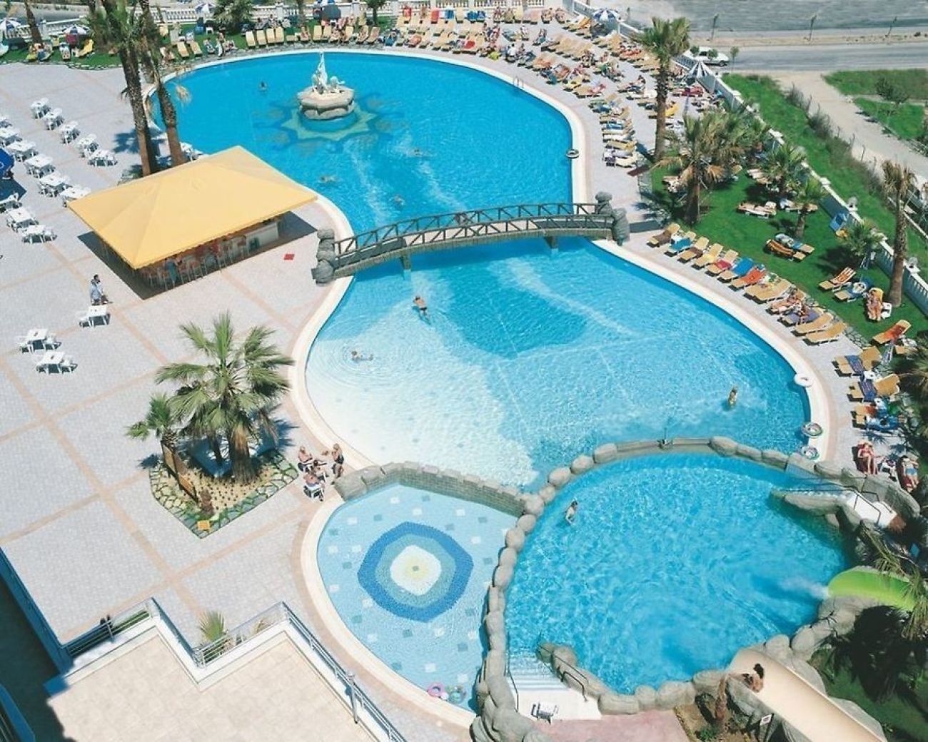 За децата: детски басейн, водни пързалки, детска площадка, мини клуб (4-12 г.).