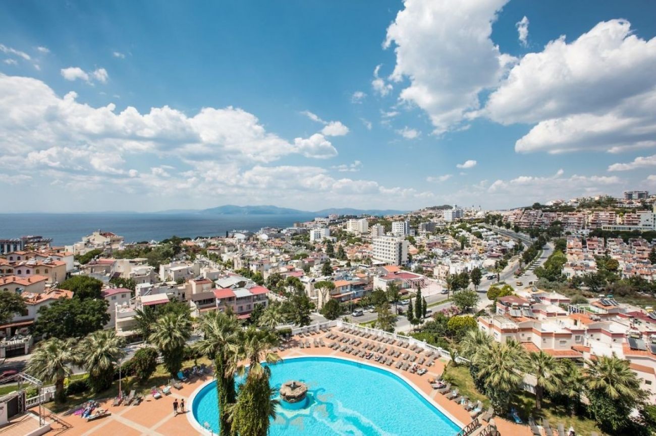 Намира се на 70 км от летище Измир, на 135 км от летище Милас, на 2 км от центъра на Кушадасъ, на 500 м. от брега на морето. Построен през 2002 г. и реновиран през 2017 г.