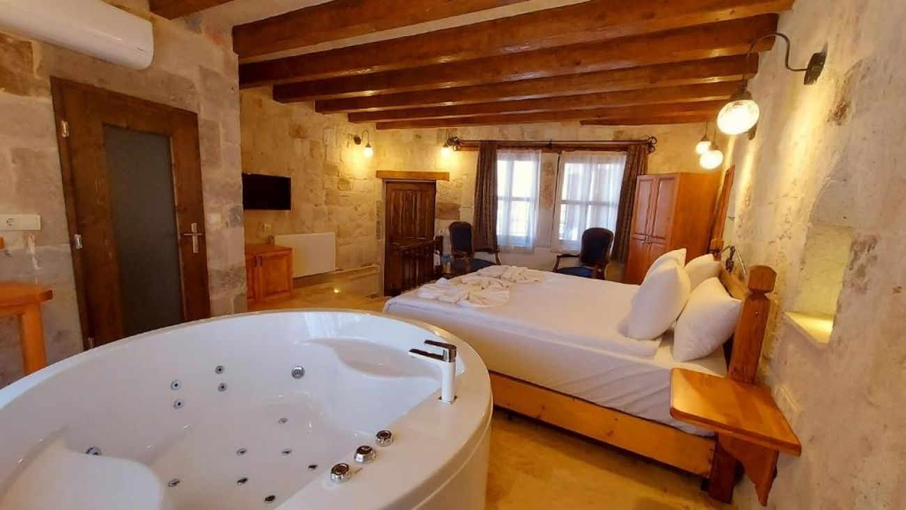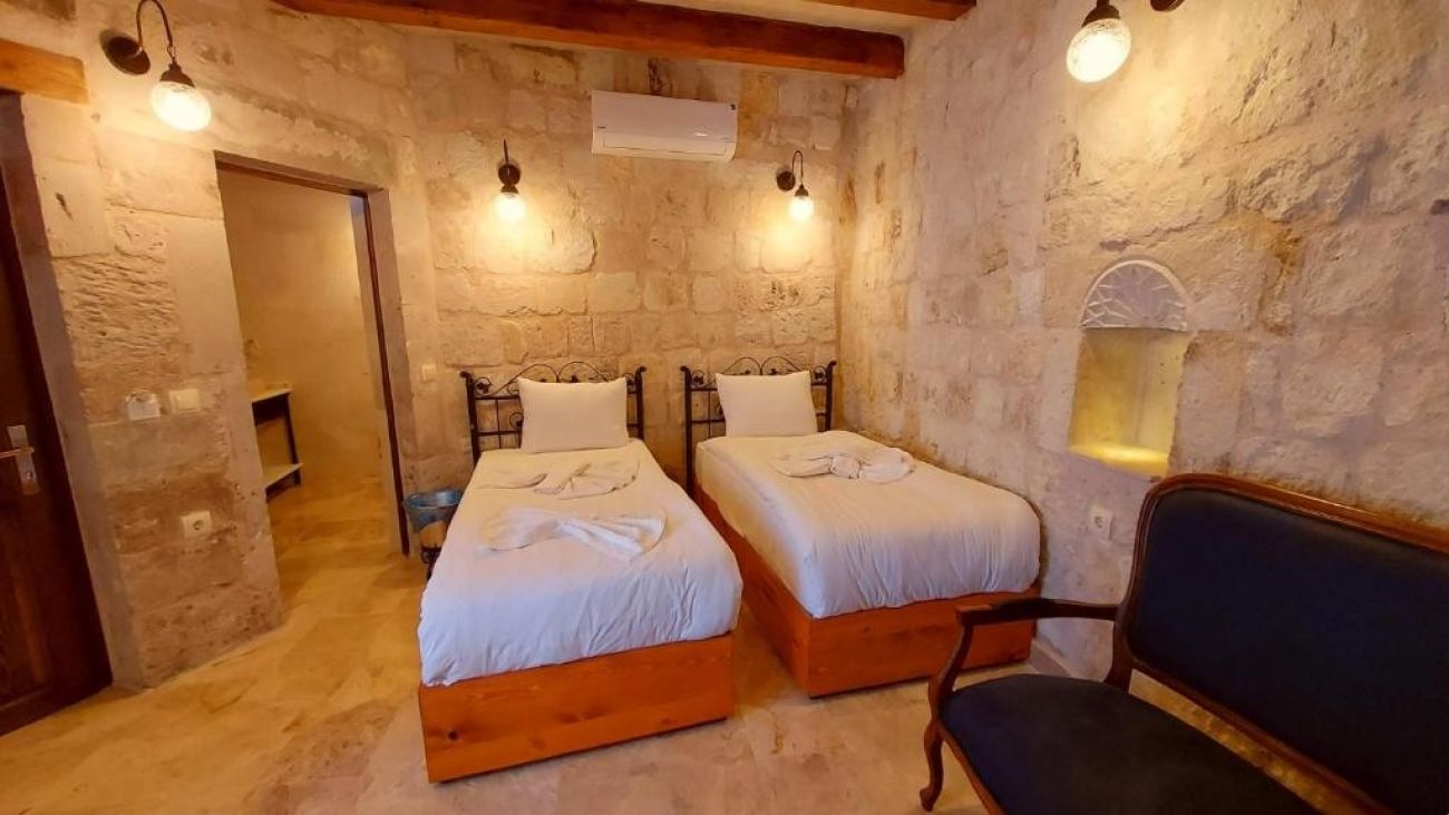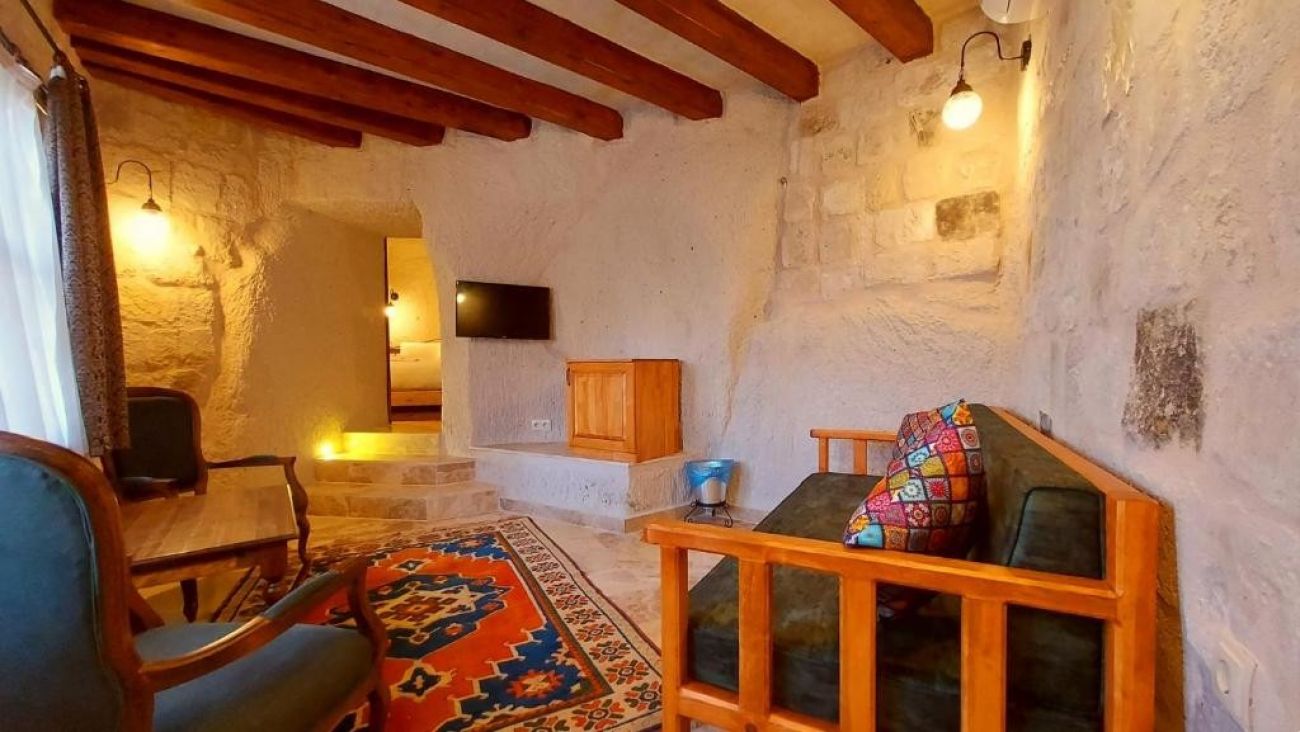 Стаи: Хотелът се състои от две сгради - Dervish Cave House и Elegance Cave Suites, които са една до друга и споделят всички удобства: рецепция, лоби, тераси, закуска и ресторант. Гостите са свободни да използват всички места и на двете сгради. Стаите, които в миналото са били къща, са построени в съответствие с историческата структура на региона и започват да служат като бутиков хотел през 2006 г. При изгрев слънце сутрин можете да наблюдавате полета на балоните от терасата и градината, а също и да се насладите на залеза вечер. Помещенията за настаняване са между 30-35 м2 и са оборудвани със сет за приготвяне на кафе и чай, LCD телевизор, централно отопление, WiFi интернет, баня с душ/вана, сешоар и в някои стаи джакузи.